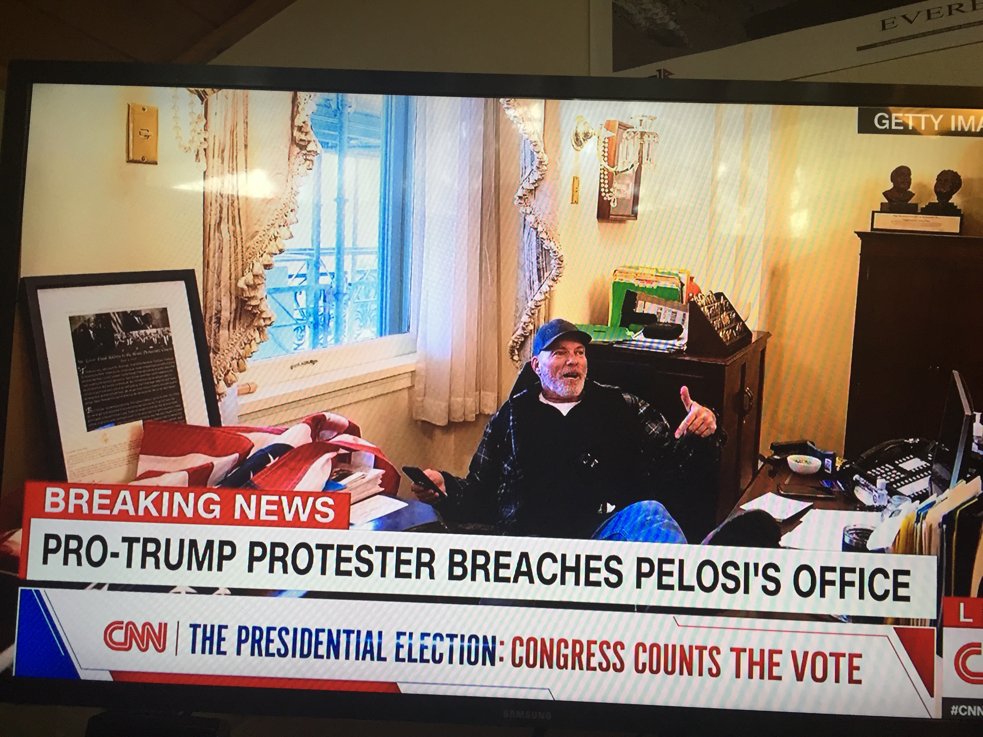We were watching a whole bunch of that in real time, stunned they could have their way with the place. And Trump just kept tweeting encouragement (by the way, Twitter froze him out of his account today… only for four hours, but still). He finally, under pressure, released a video of himself telling his army of domestic terrorists to go home, told them he loved them and explained to the world that this is what happens when people get their election stolen from them.