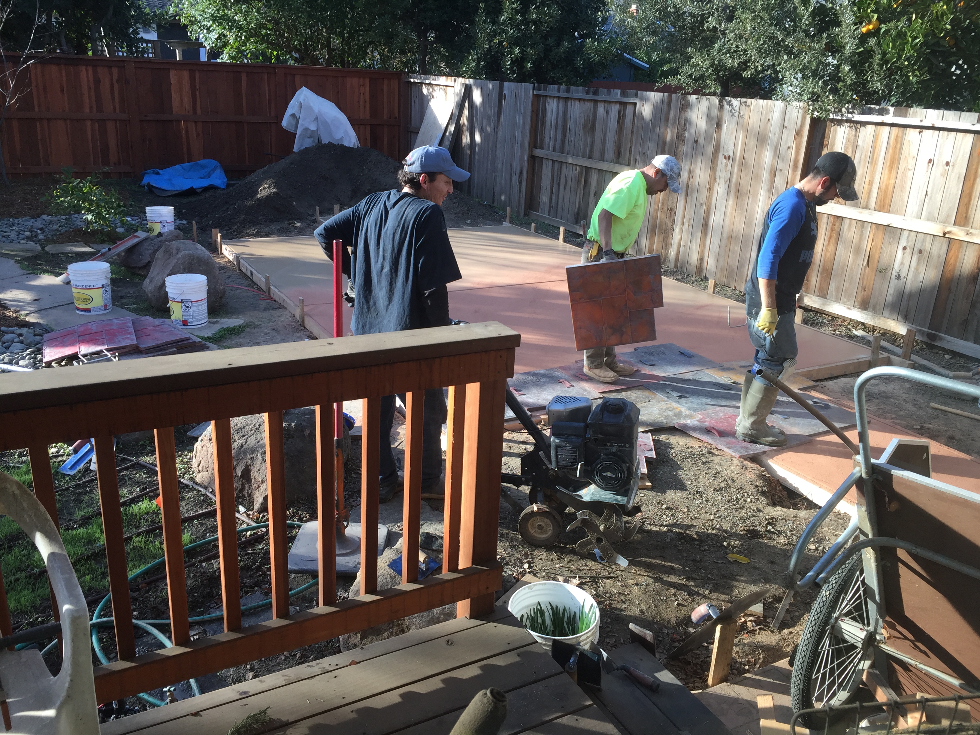 Big doings on A Street! Patios were poured, flagstone was laid, and other good things happened inside, too, on a most productive January day.