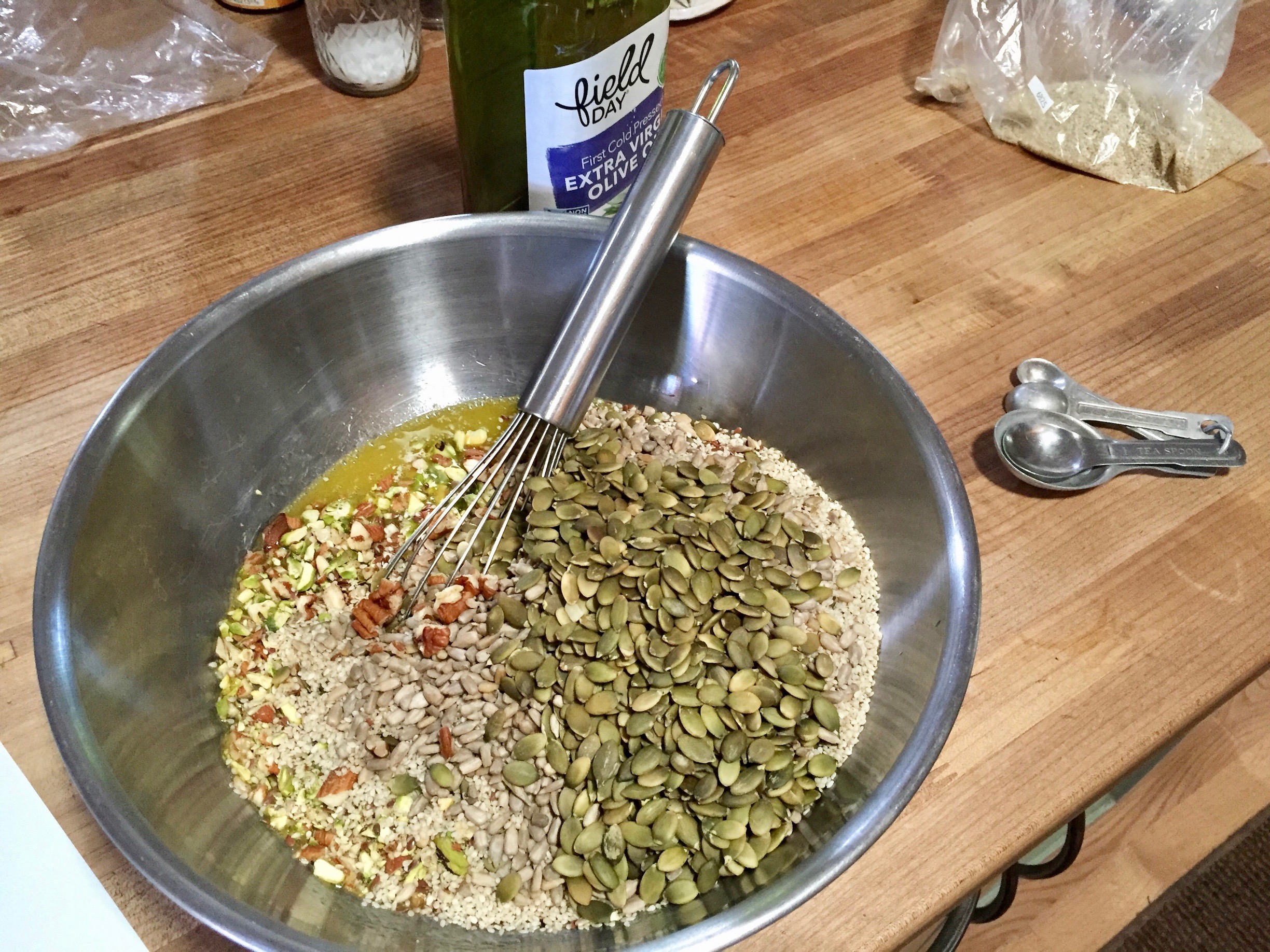 You take 3 cups of seeds… in this case: sunflower, pumpkin, sesame and flax: