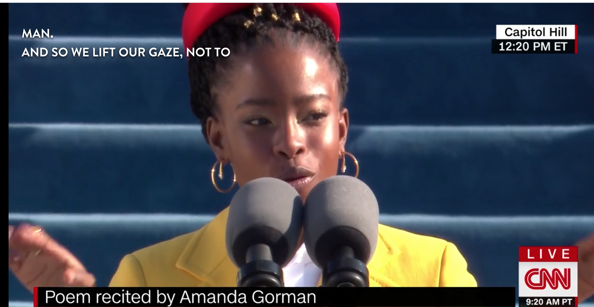 By far, though, Amanda Gorman’s poem, and her delivery, inspired me the most: