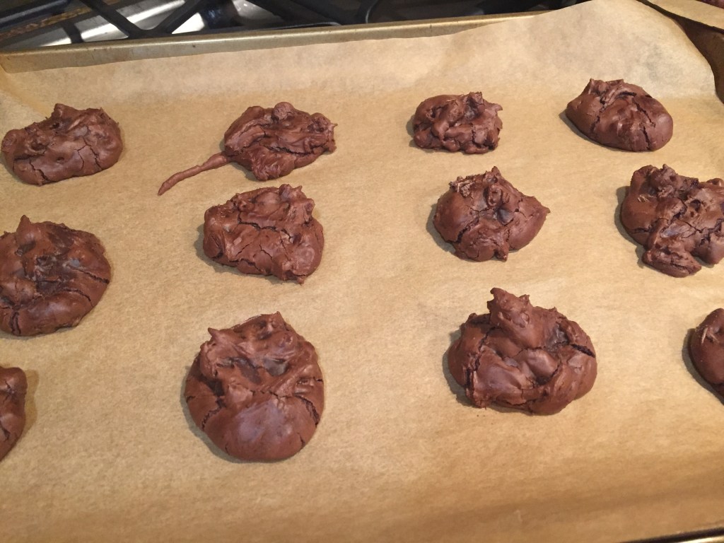 …which then turned into these (three dozen flourless, dense, brownie-like chocolate cookies):