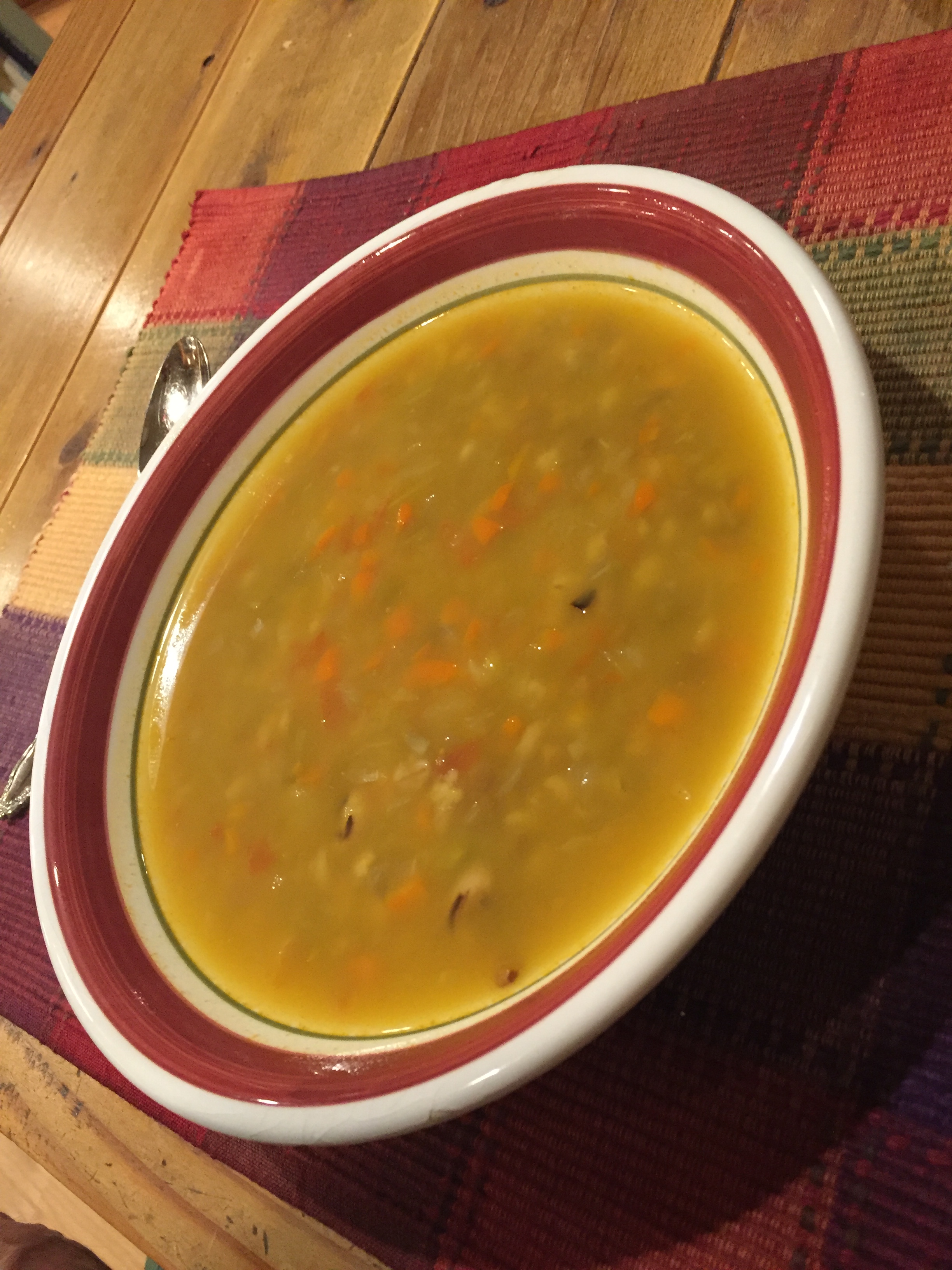 …. then got added to this (a dry mix of barley, lentils, black eyed peas and some other stuff that boiled in water for a while to soften up and was then drained)…