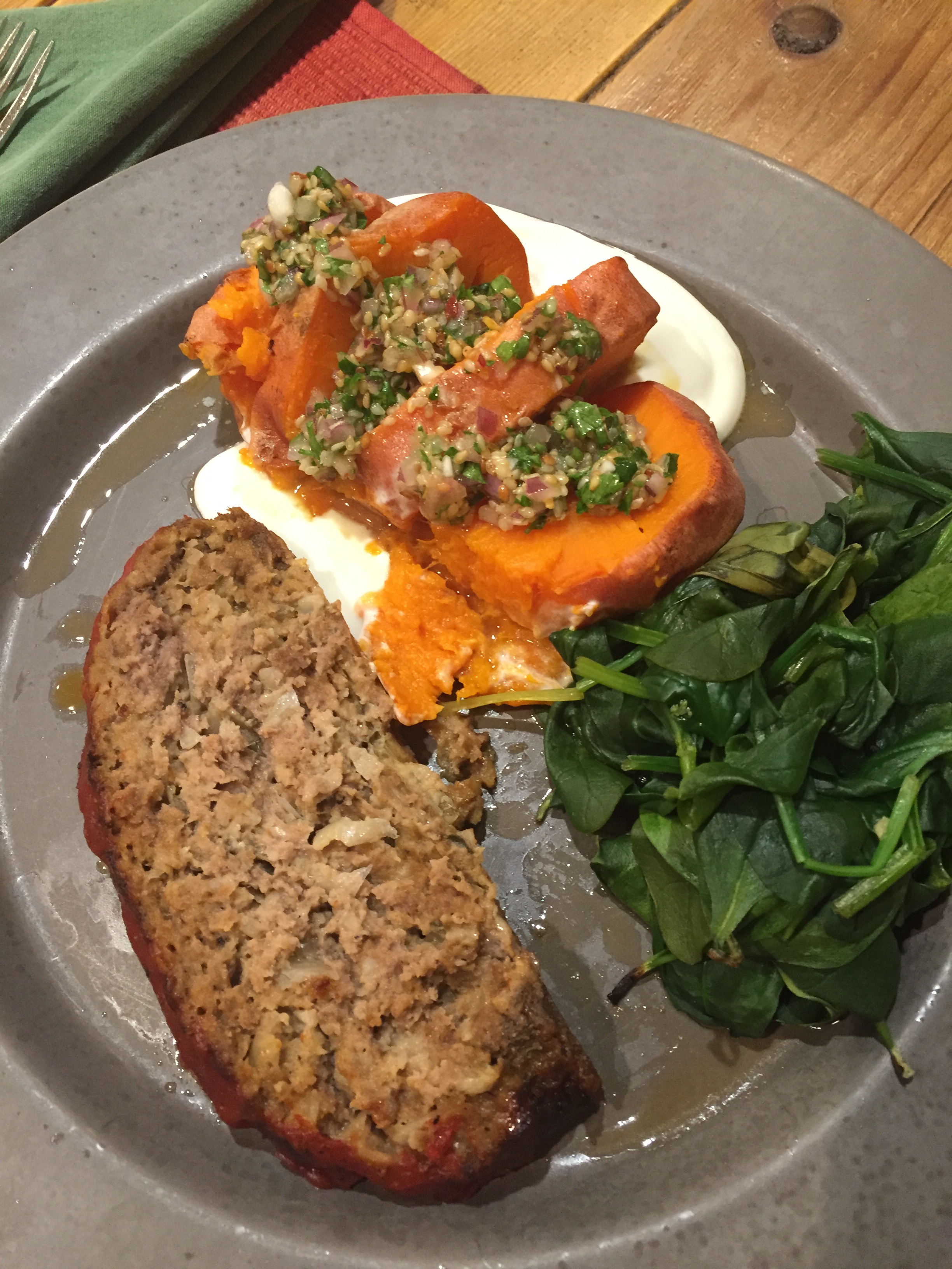 And the final.. served with the last of the birthday meat loaf and some steamed spinach… so, so, so GOOD!