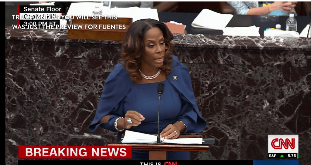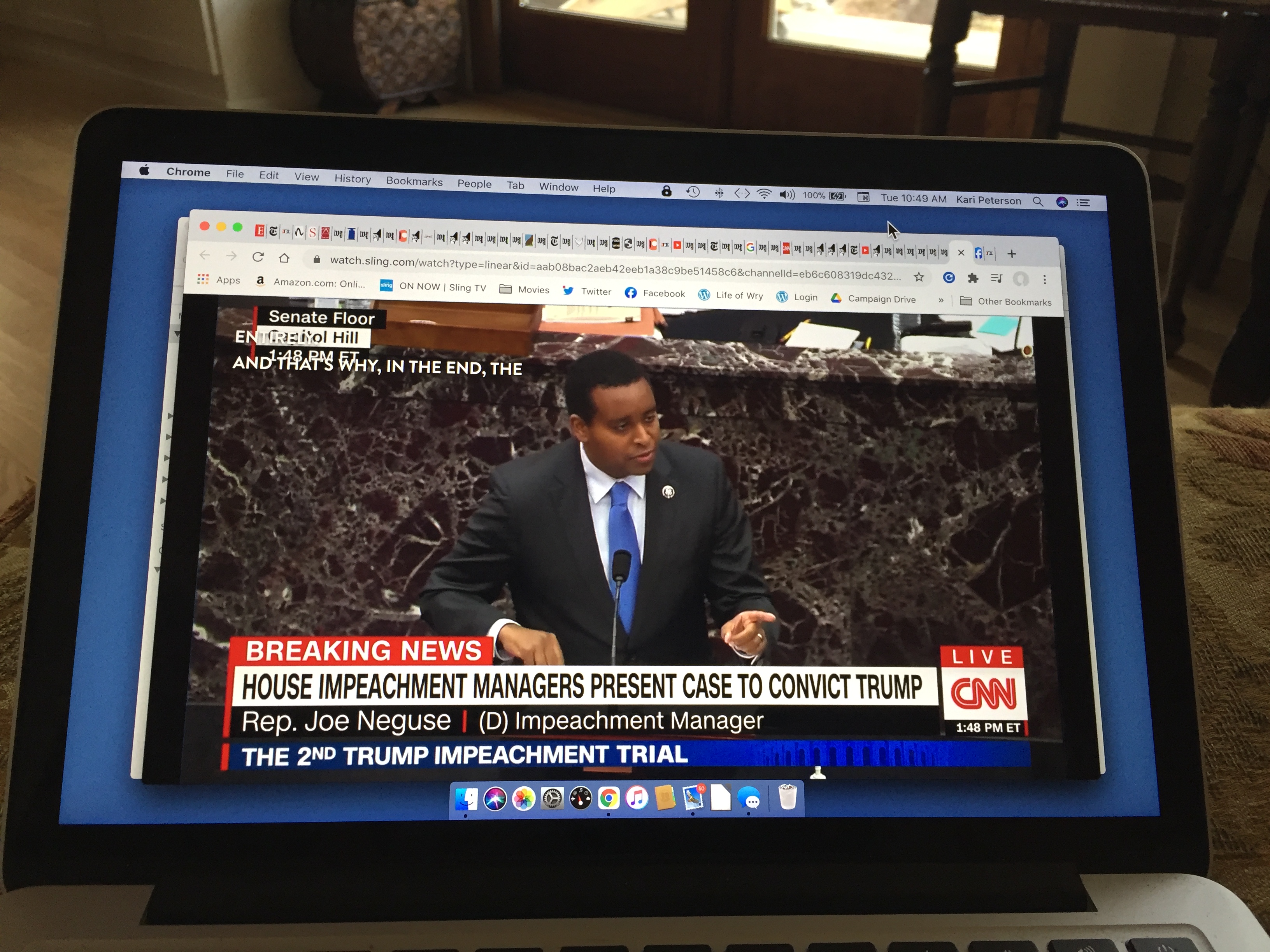 I meant to comment last night, I’ve been so enormously impressed by the impeachment managers. I’d heard Jamie Raskin talk about the suicide of his son Tommy before, and was so deeply moved by the fact of it, but also his humanity in describing it, processing it, carrying on in the way he has. Jamie Raskin is a lovely human being. The other impeachment managers have also been very impressive, particularly Joe Neguse and Stacey Plasket. Their case, their videos and other visuals…so well presented, so methodical, thorough, tight. It’s an insult that the senators don’t seem to be budging from their resolve to stick with Trump no matter what.. such an insult to our country, to democracy, and such an insult to history. May they all be remembered in the worst possible way.