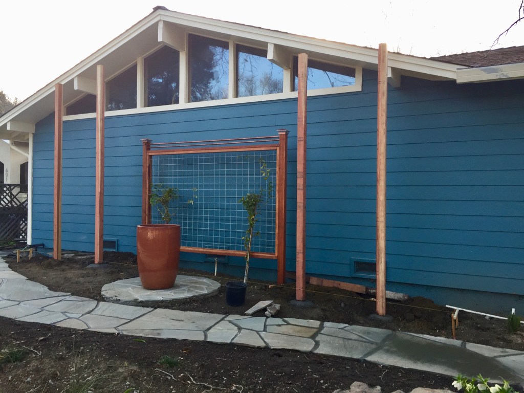 Jim provided Ruben’s crew with a plan and a string line in order that they locate the poles exactly for the future installation of our artisan metal panels (as it were). Eventually, the panels will be attached to those poles and Jim will finish them off in some attractive way. They’ve been ordered, are in production, and will be ready in about a month or two. Slowly, slowly it’s coming together..