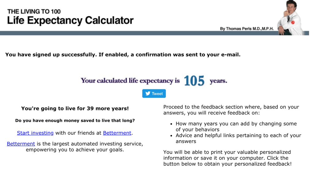Then I completed the survey and got this: