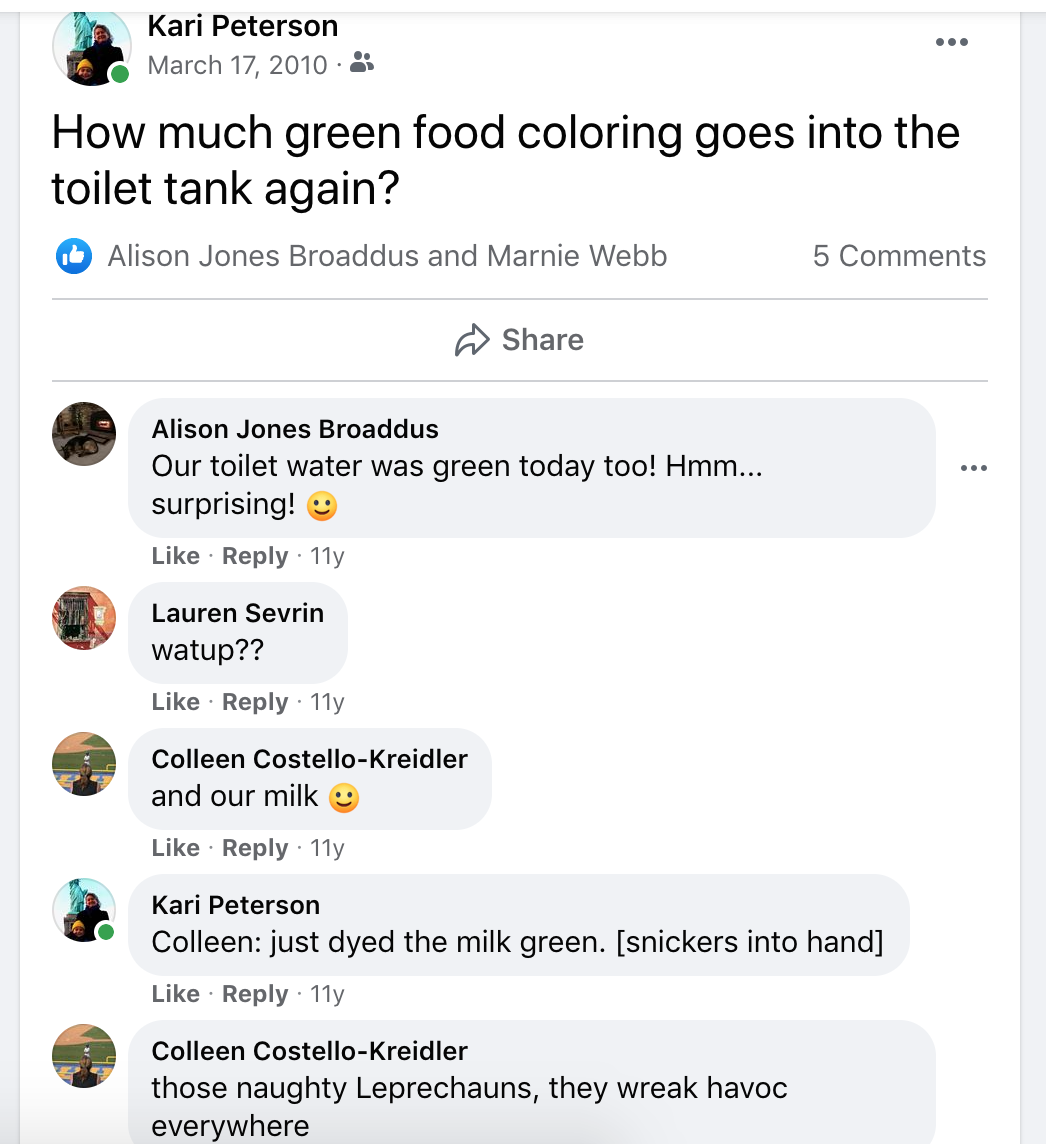This popped up in my Facebook memories today.. a post from 11 years ago, back when [non-Irish] moms made St. Patrick’s Day fun for their [non-Irish] eleven-year olds…