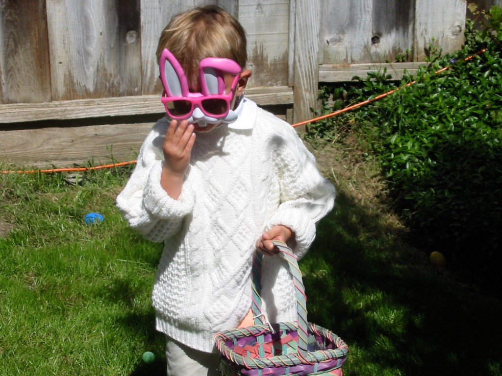 This is Easter morning at our house.. hunt for the big basket. Usually, there was a clue that sent him on the hunt for this…