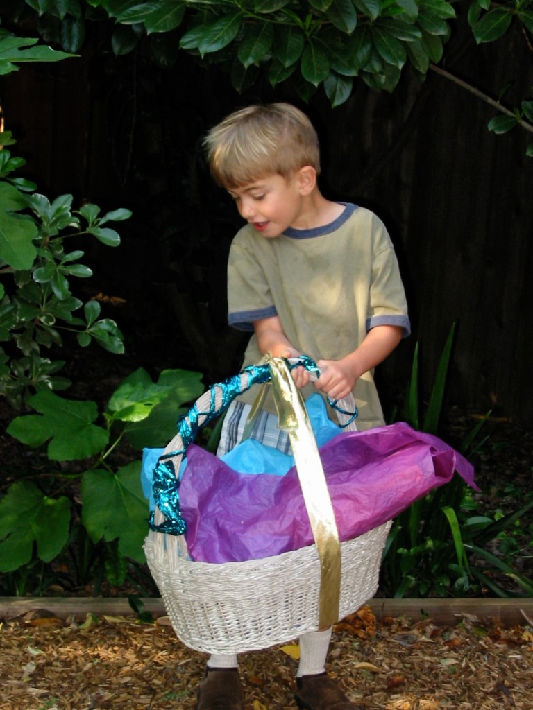 2004 (now 5 years old), there was a big basket hunt, per tradition, at our house…