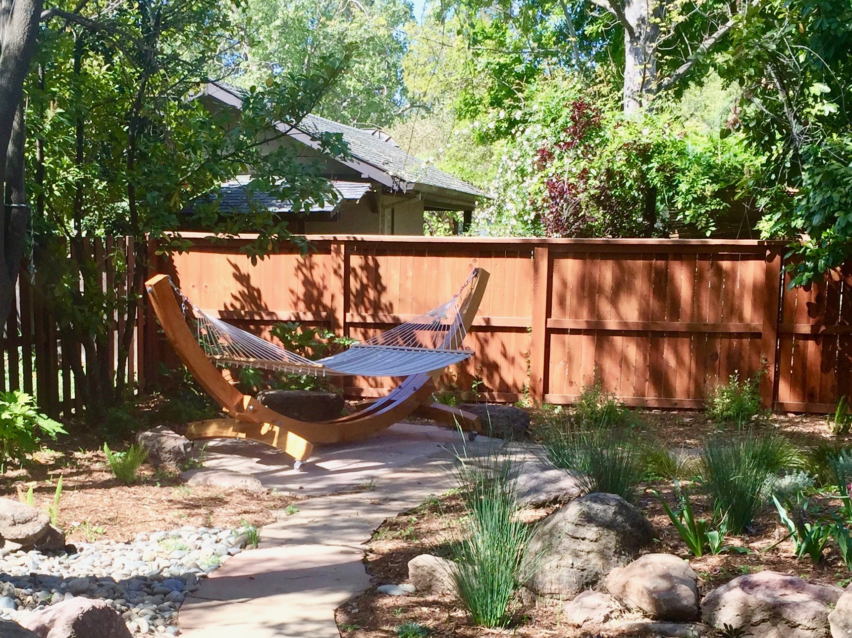 And second exciting thing… Jim hung the hammock in the back of the backyard. That is a piece of beautiful, functional art!