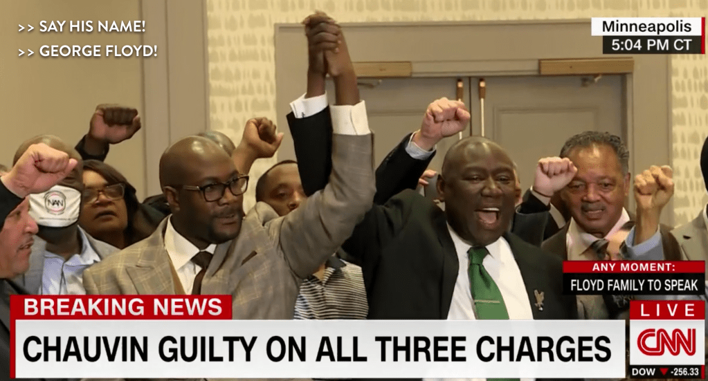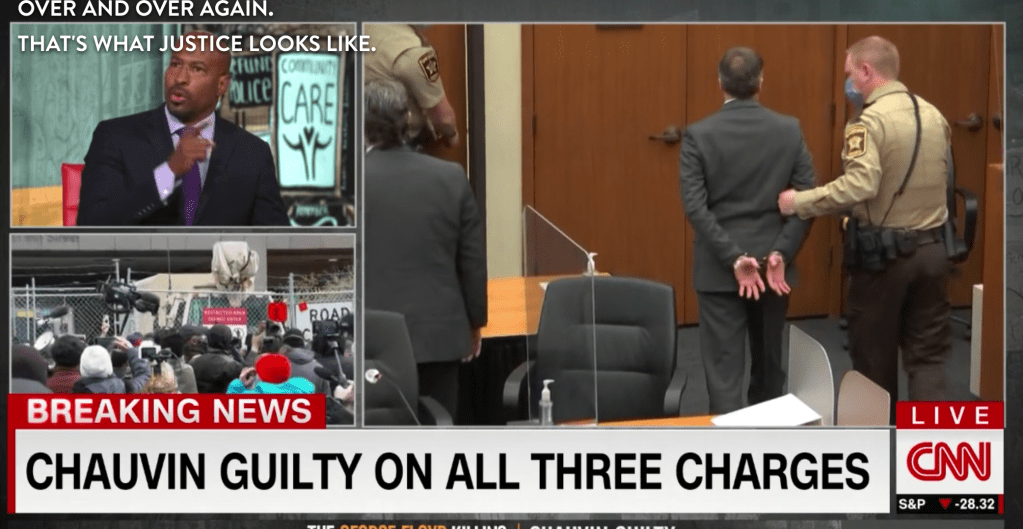 A country awakened to the rank injustices in law enforcement and our judicial system is worth a ton. And now the ball’s in our court — the public’s. We somehow have to sustain the focus and outrage to keep people engaged in order to bring about a real shift in cultural attitudes.. right? As Van said, a guilty verdict today isn’t the end. There’s a lot to do to bring about fair policing. The public has to want it, the media’s got to keep it alive, there has to be significant pressure on our policy makers and legislators at all levels to re-imagine our policies, practices and laws.