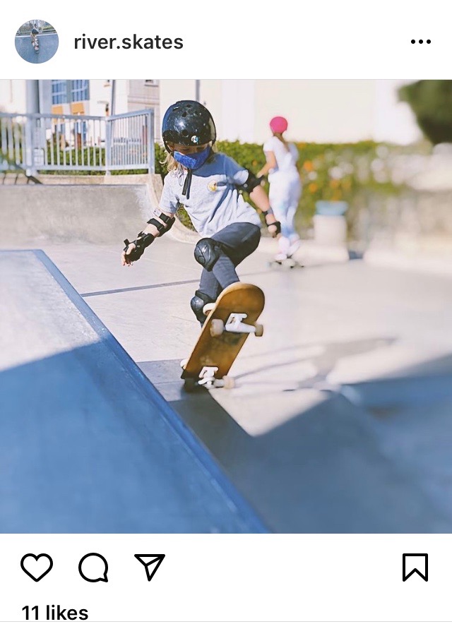 He doesn’t always just go along for the ride… he is a skater in his own right (with his own Instagram account):