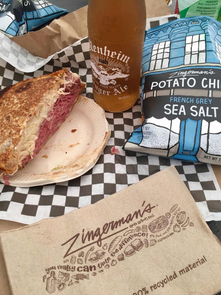 Then we wandered a bit downtown, though it was kinda wet and not so pleasant, so we ducked into Zingerman’s and had an early dinner: