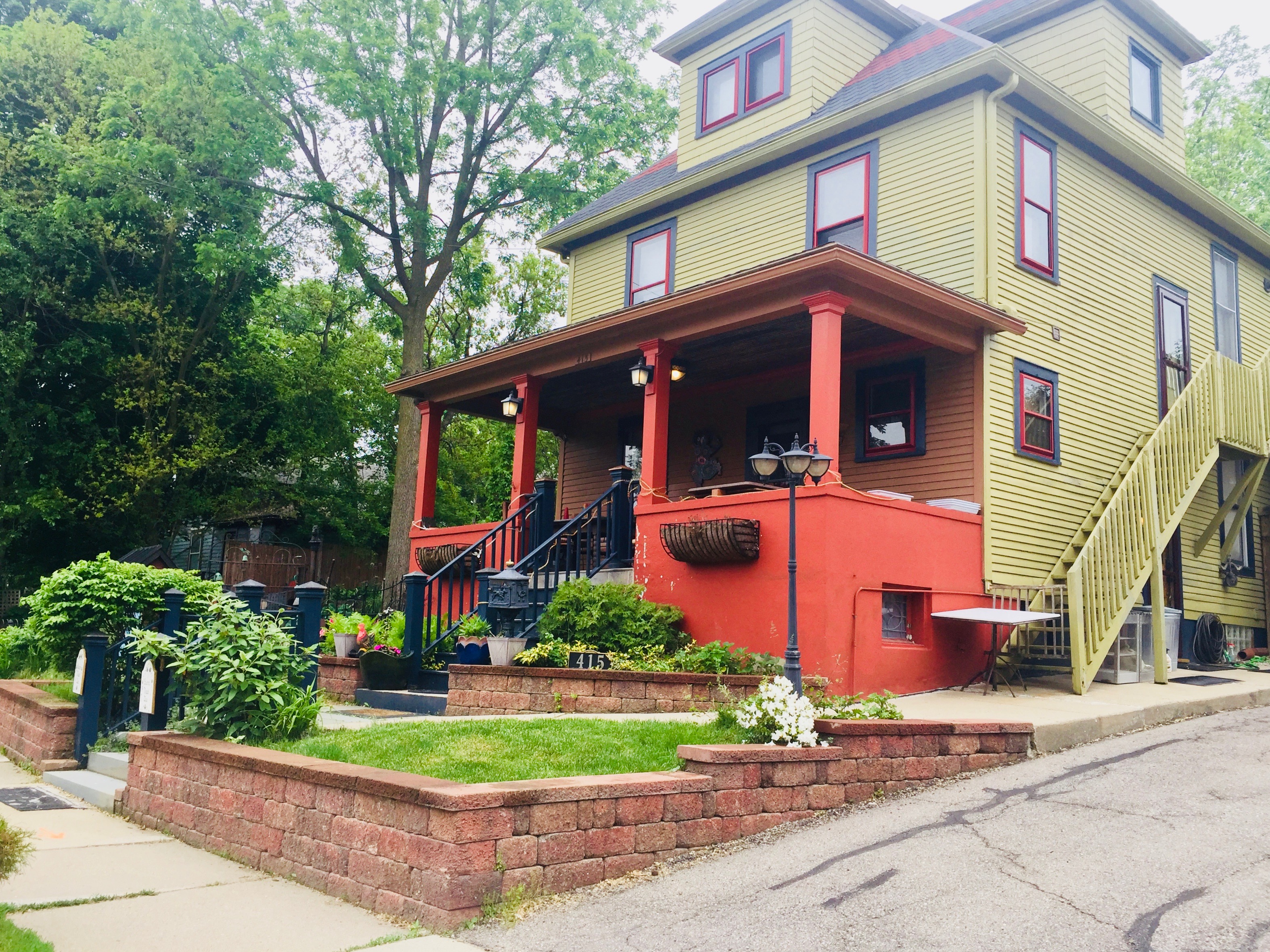 Jim and I had an hour to sit in the large front yard garden (out of view, but to the left of the house) and wait for our Uber driver to show up. We talked with a neighbor who’d found her lost dog. That was a nice little tale. Then… off to the Detroit airport.