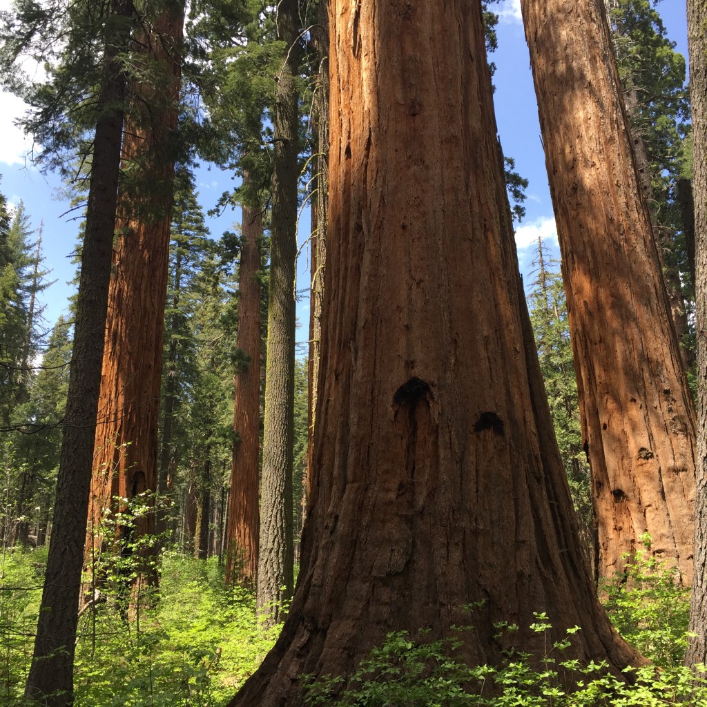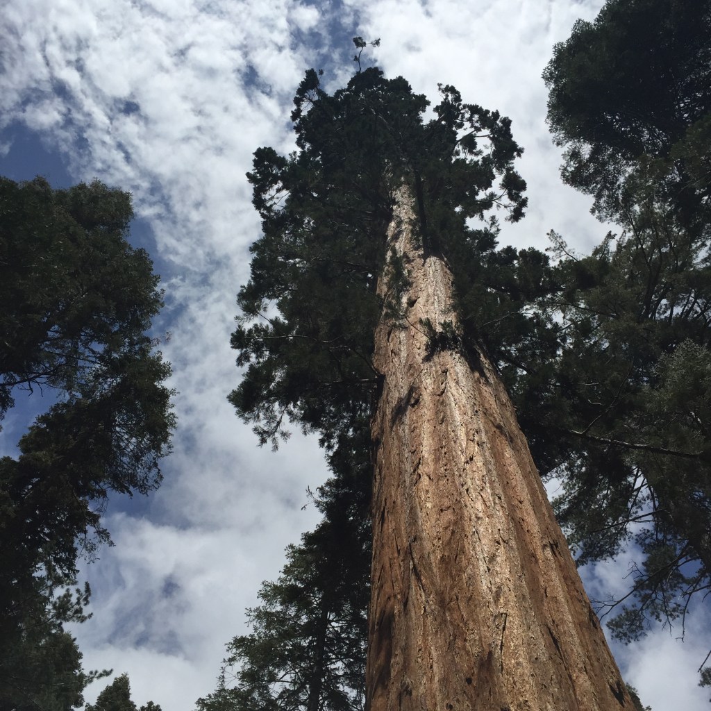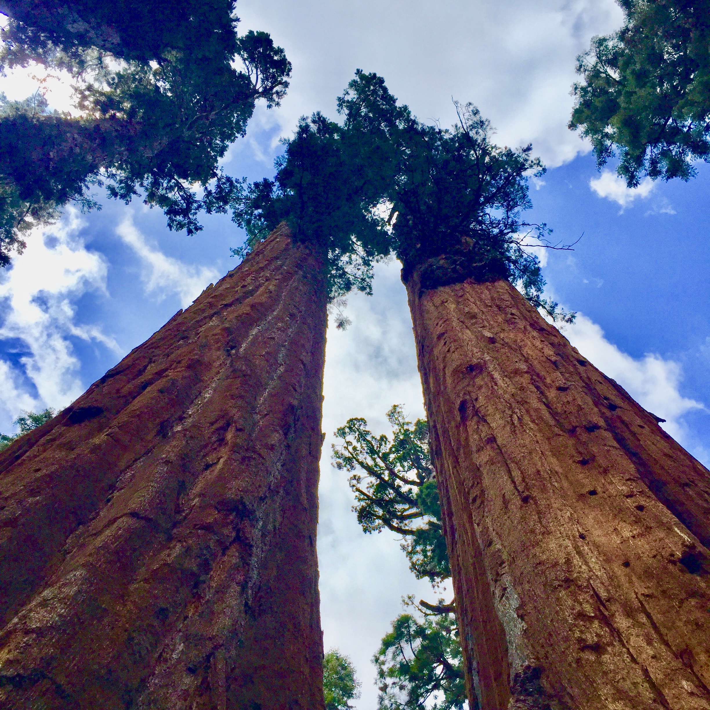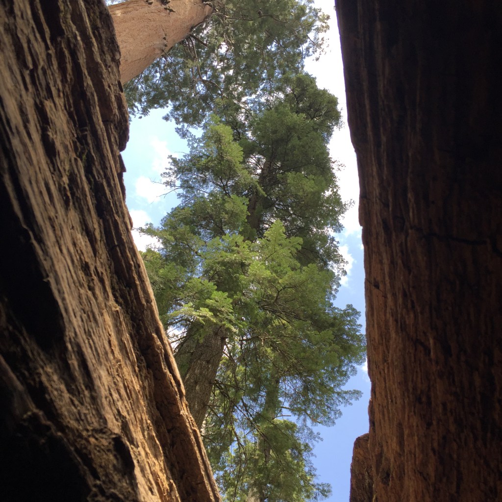 This one is looking up from inside a fallen tree! You can walk nearly the length of this giant sequoia, standing up in some parts. Some of its trunk was split, providing the sky light. It’s very cool.