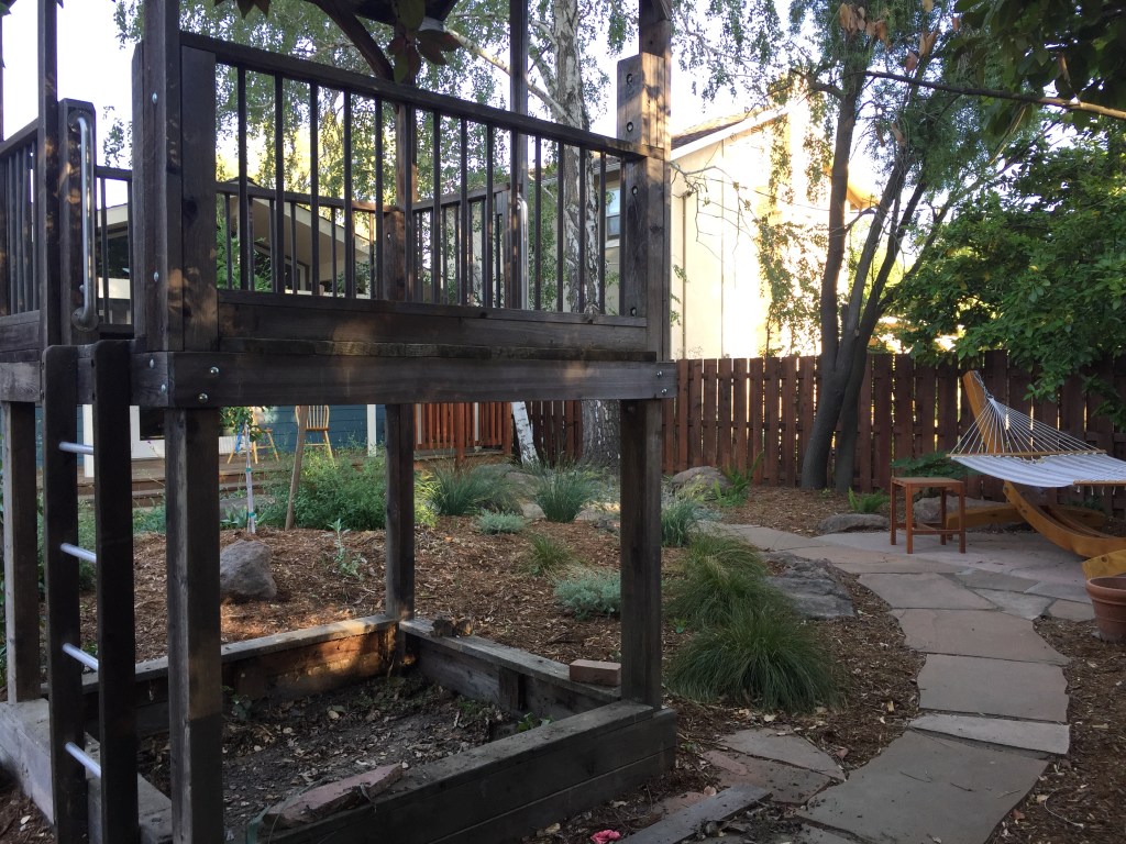 And, one day, I imagine grandkids will enter the picture and Jim’s and my ladder climbing days will be over and we’ll add back a slide, a swing, some sand for the sand box and it’ll be, once again, a play structure.