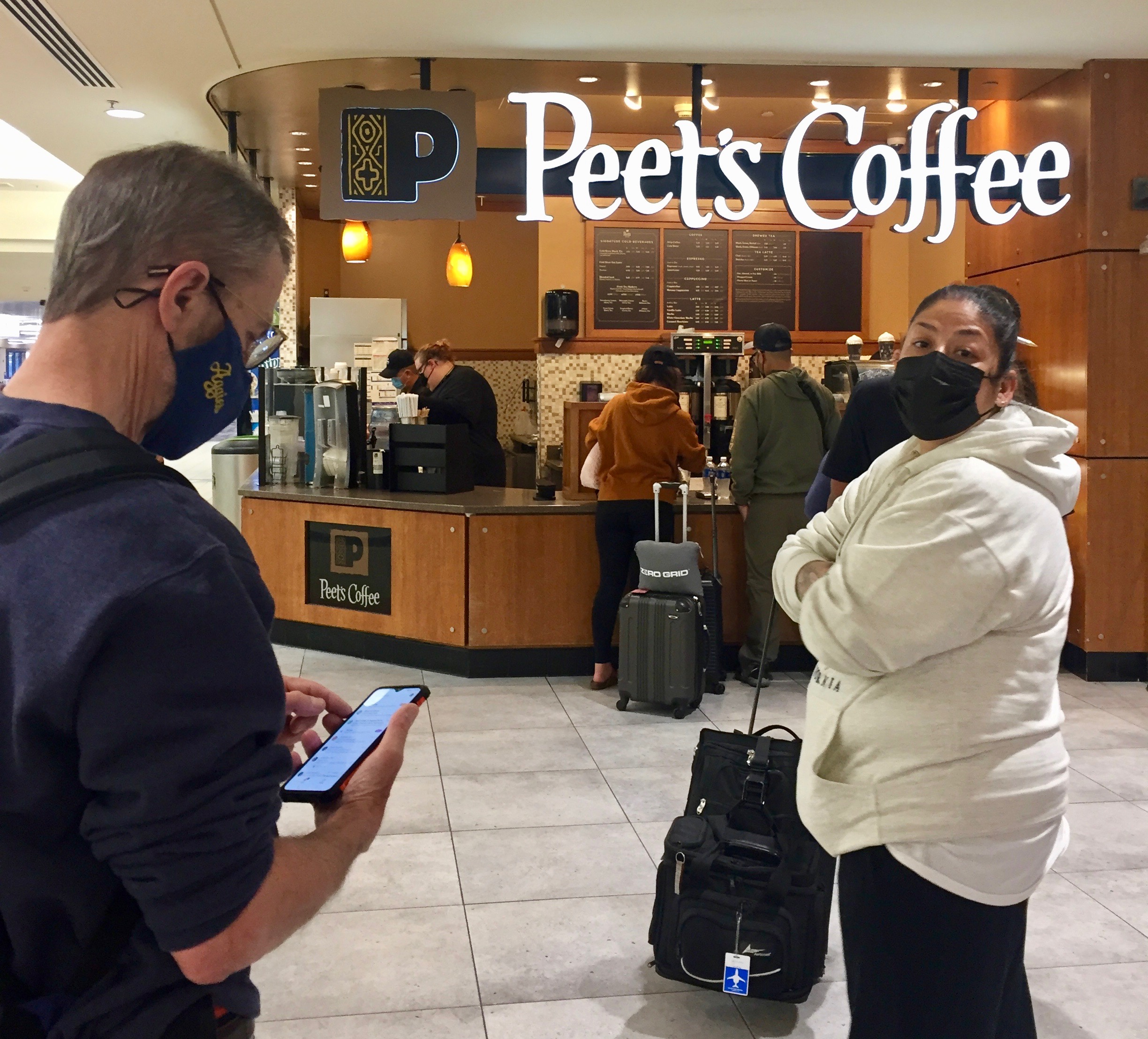 I was even excited to be test driving my new pink canvas backpack that Staci made for me. Everything about traveling seemed fun.. even cramped seats, no legroom, masks (cold stares)….