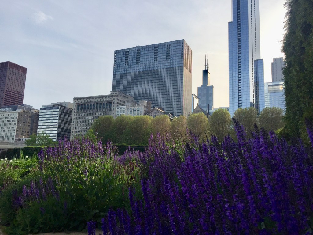 Wandering through the botanical garden, looking west.. that is possibly the Willis Tower in the background, the one with all the antennas. For almost twenty five years, it was the tallest building in the world, until 1998.. but now it’s not even in the top 20. Used to be the Sears Tower (when I went to the top, long ago).