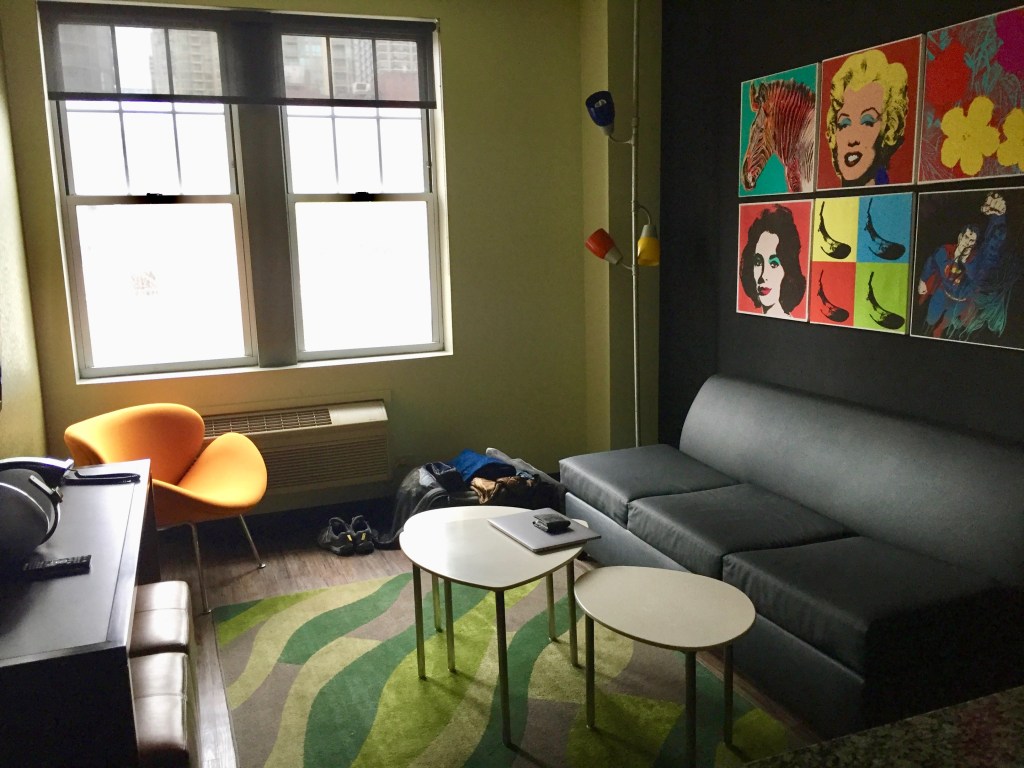 Here are a couple shots of our room at the Acme… it’s got kind of a seedy-chic, arty, kitschy vibe…