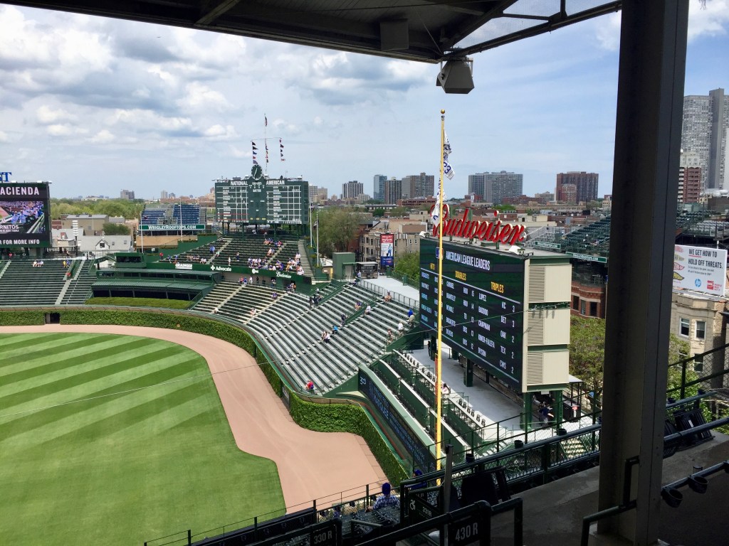 The scoreboard was right there and we were on the warning tracks. 🙂 You can also see a couple of the nearby rooftops, which sell bleacher seats on their roofs. They surrounded the entire outfield.. it was pretty neat, sure they’re much cheaper.