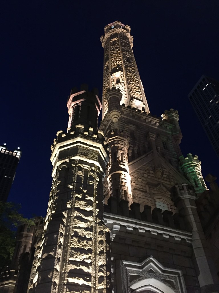 It was starting to get extremely busy and lively in the evenings in that part of town.. streets packed, very noisy. While we waited for our table to be ready, we explored a little to the north, around the area of the Water Tower.. very pretty at night: