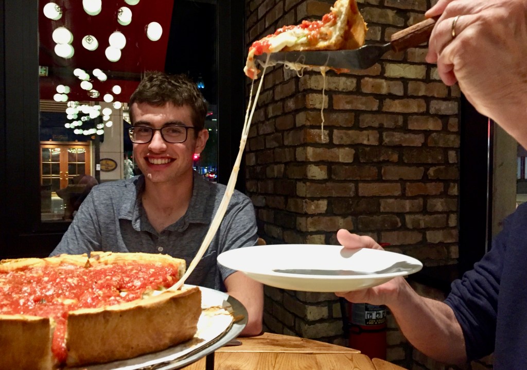 We returned to the Acme so Peter could get some work done on a paper he was writing (his first scientific paper they hope to get published). Then headed out for another late dinner.. this time deep dish pizza at Giordano’s on Rush and Superior.