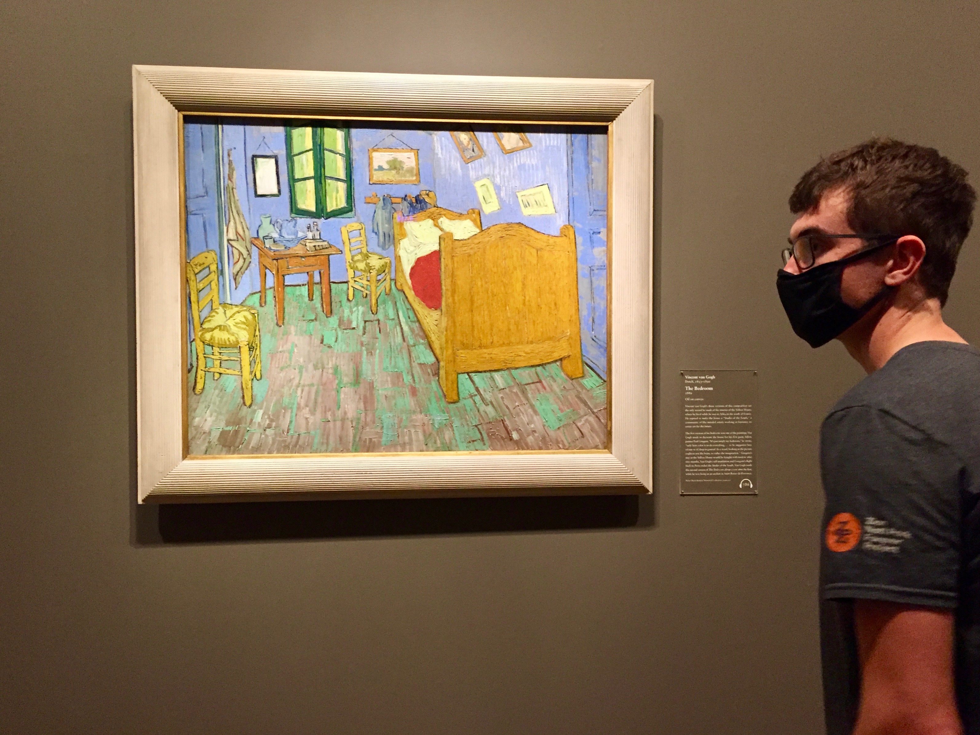 We then began a pleasant meander through the warren of rooms and halls on the second floor as we waited for a text telling us it was our turn to enter. We wandered at our own paces, usually meeting for moments at a time in front of this Van Gogh, or that Pissarro. I’d say we spent most of our time in the Impressionist section of the museum, but also saw modern American art (Grant Wood’s American Gothic, Edward Hopper’s Nighthawks, Georgia O’Keeffe, Archibald Motley). The best? Was hearing Peter’s take on a painting.. what he liked, what spoke to him. Fascinating, really. He’s already begun to acquire prints of some of his favorites.. they are collecting in his room in Ann Arbor, awaiting a hanging strategy. I guess art acquisition is the fun part… mounting them is a bit tedious. Still, I love that he is cultivating an appreciation for art and developing and following his own taste instincts (I mean, of course). Very fun for me to observe.