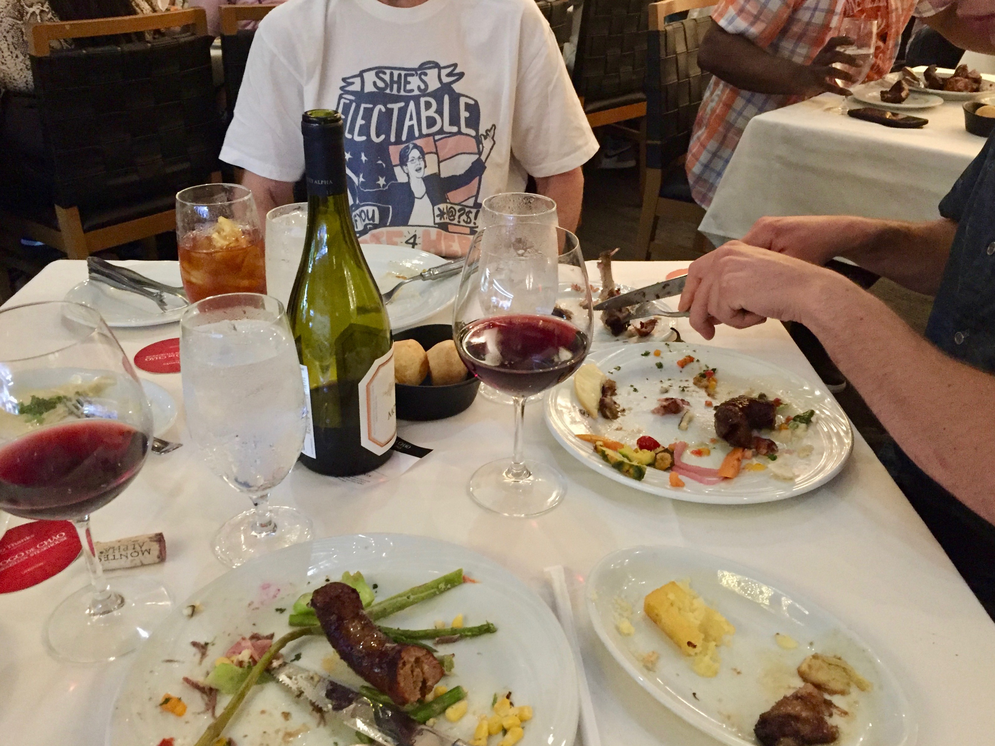 And…after hanging out in the hotel for a bit, it was another late night dinner, this time at a traditional Brazilian meat restaurant. We’d eaten at one in Brazil, funnily enough, which was an experience. This was also an experience!