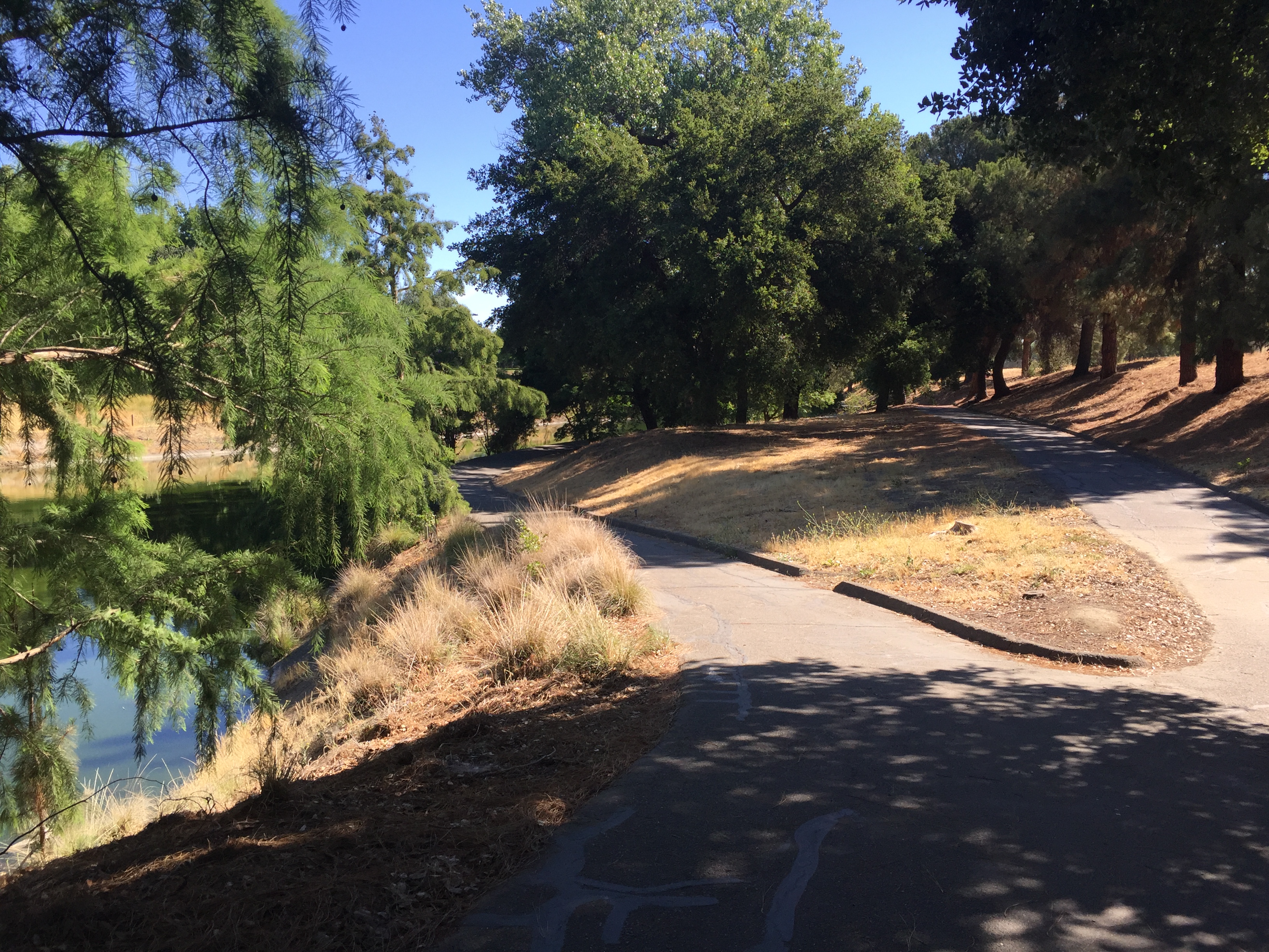 Anyway, I changed things up today… not quite intentionally, but I achieved that desired effect. I was doing the whole loop around Putah Creek with Darlene. I always walk clockwise around that far end of the Arboretum, but today we walked counterclockwise around the lake (sorta lake). This meant I was seeing views I’d not quite seen before (well…. not in a long time anyway). Same creek, same trees, same islands in the middle of lakes, same trail… and yet, everything at that end of the Arb looked different.