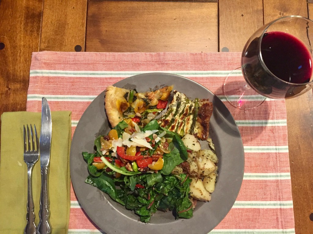Something old: last night’s french pastry pizza, Friday night’s asparagus, goat cheese and tarragon tart and Friday night’s salad