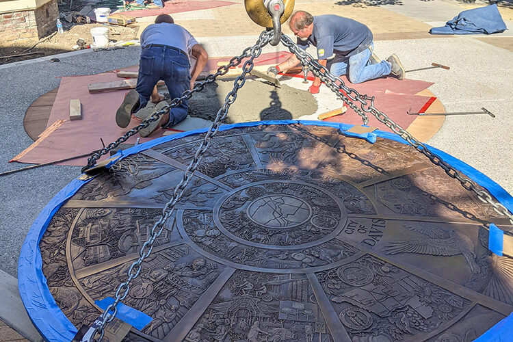Installed May 25 in front of the Dresbach-Hunt-Boyer House at 604 Second St., it celebrates the 100th anniversary of the 1917 incorporation of the city Davis. In the works since 2016, it includes a 6.5-foot circular bronze seal designed by Davis artist Susan Shelton, surrounded by landscaping and commemorative bricks.