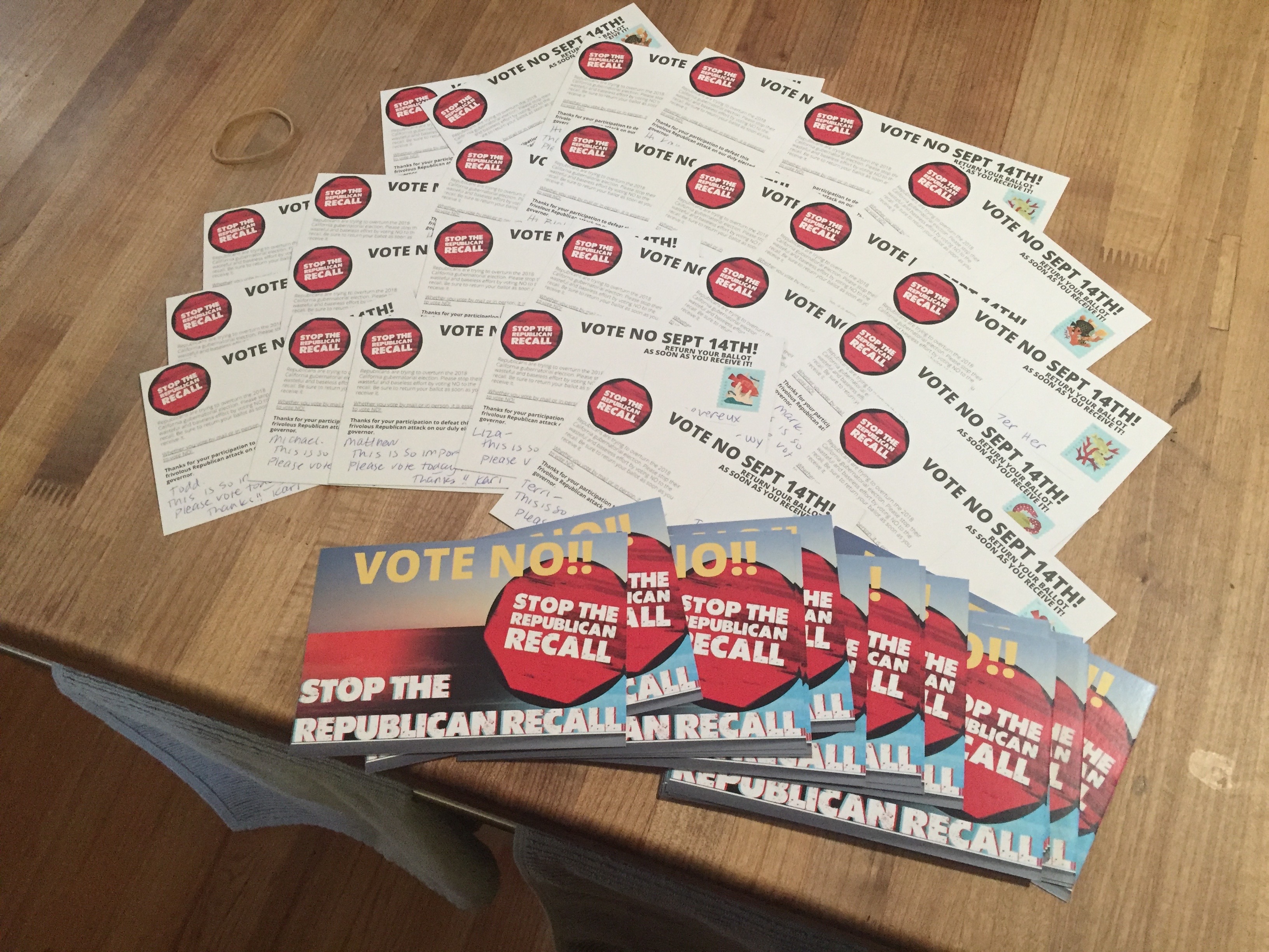 50: Number of postcards I wrote to democratic voters in Roseville reminding them to vote NO on the California Governor recall election next month