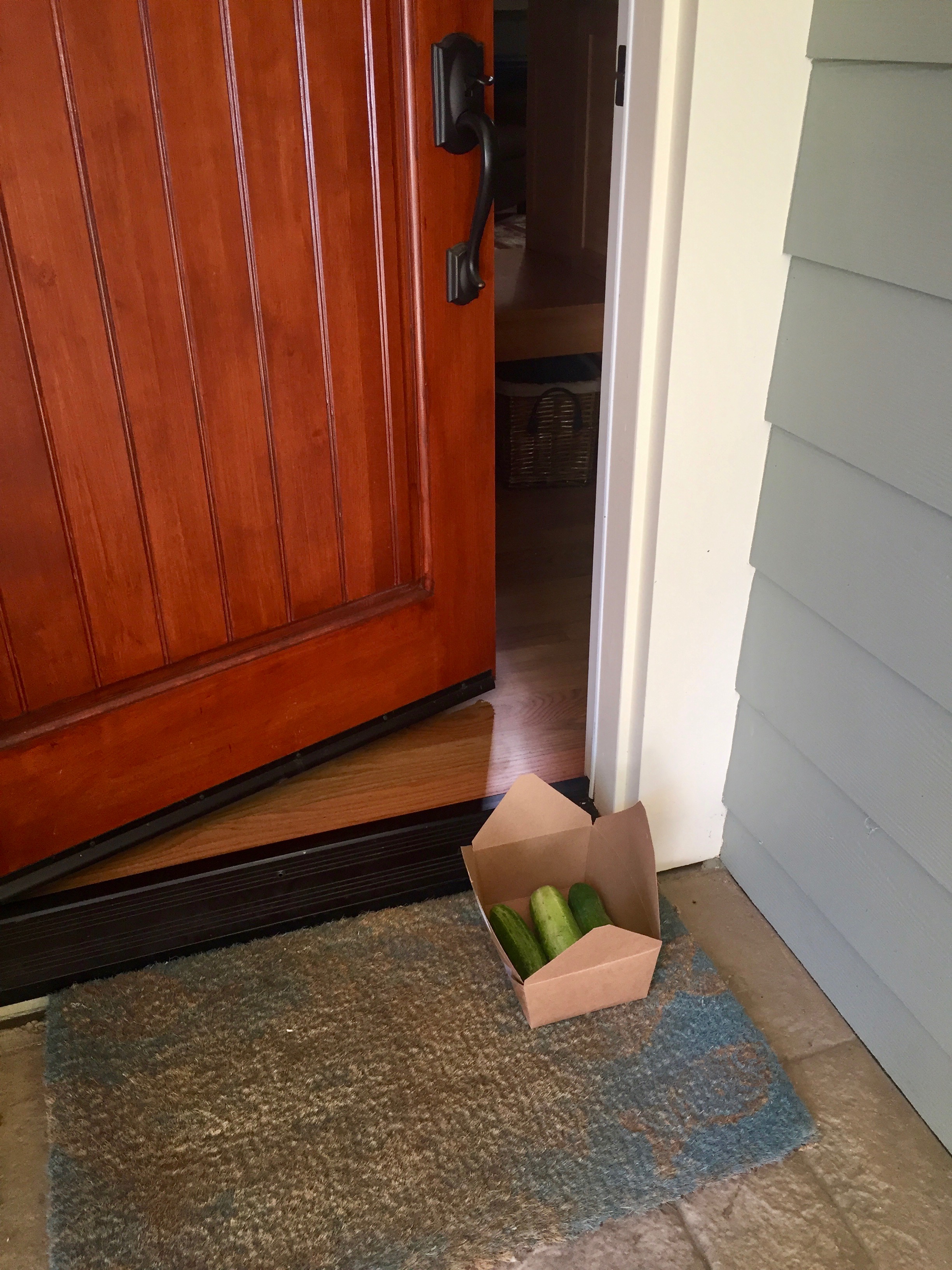 That’s all, just three cucumbers.. from, presumably, our neighbor down the street.