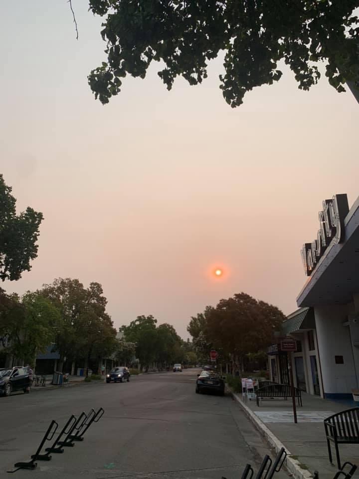 First, it must be noted that it is still very smokey hereabouts. As I write this, I’m looking out the window at a bright reddish-orange sun that is sinking westward. It’s cool looking, but is not a good sign. Here’s a pic of that glowing sun in an otherwise darkish late afternoon sky.