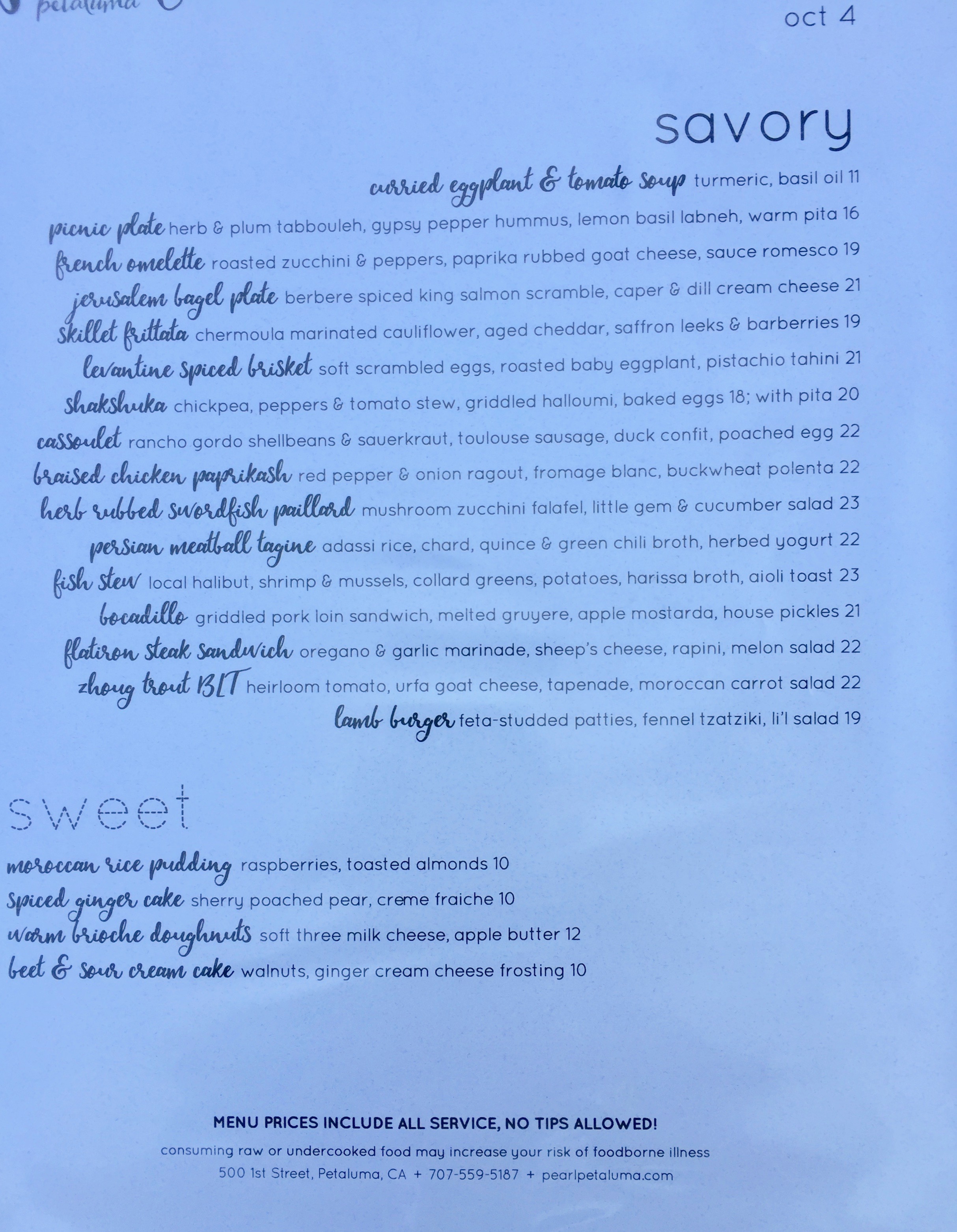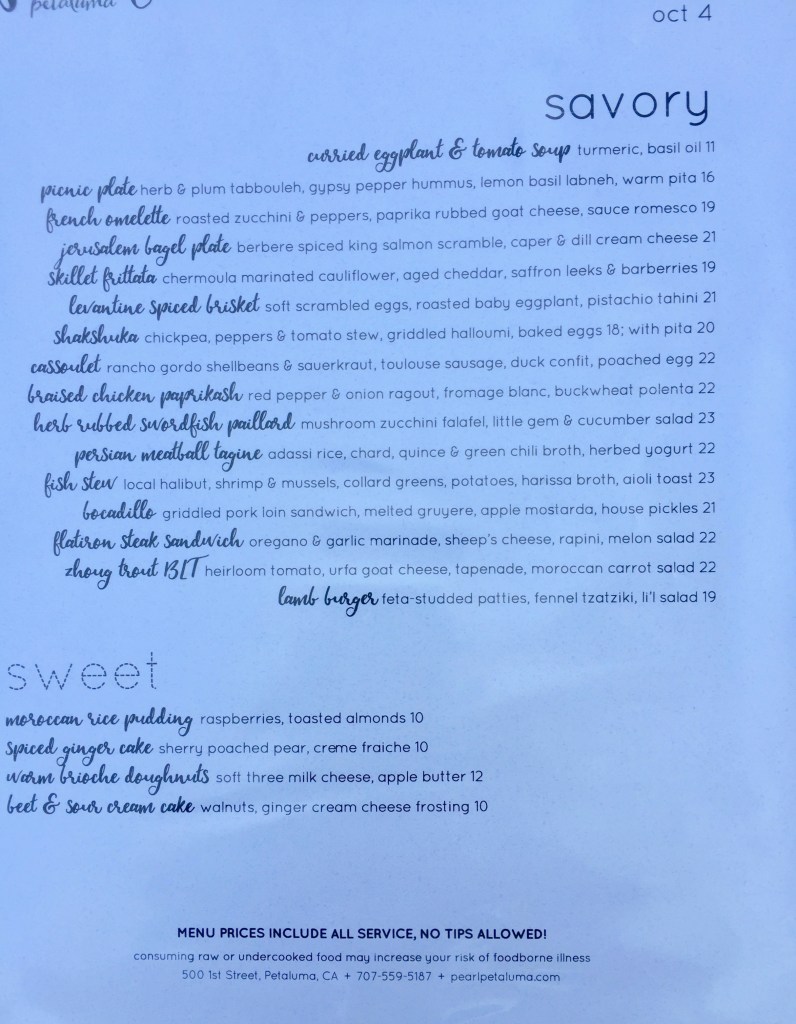Tradition includes lunch in Petaluma (after which we’ll provision for four days of meals — some cooking, but lots of snacks — at Whole Foods). Being Monday and still in the pandemic zone, a lot of places we’ve eaten at previously were closed, so we tried a new place called Pearl, located outside of the downtown area (but close) in a bit of a gentrified industrial area, 1st and G, a block up from the river.