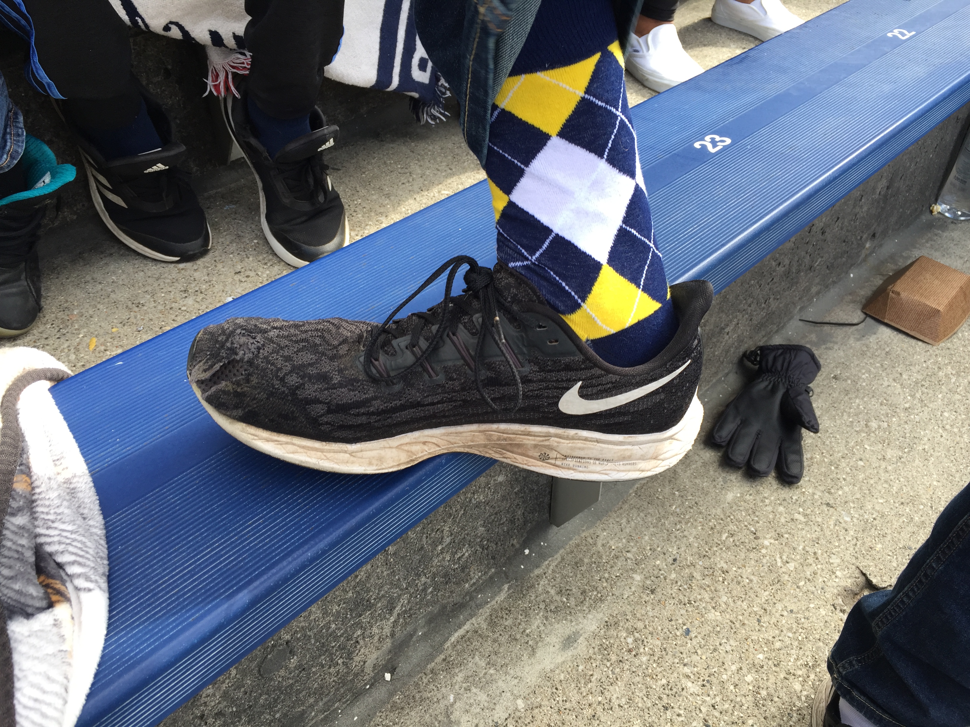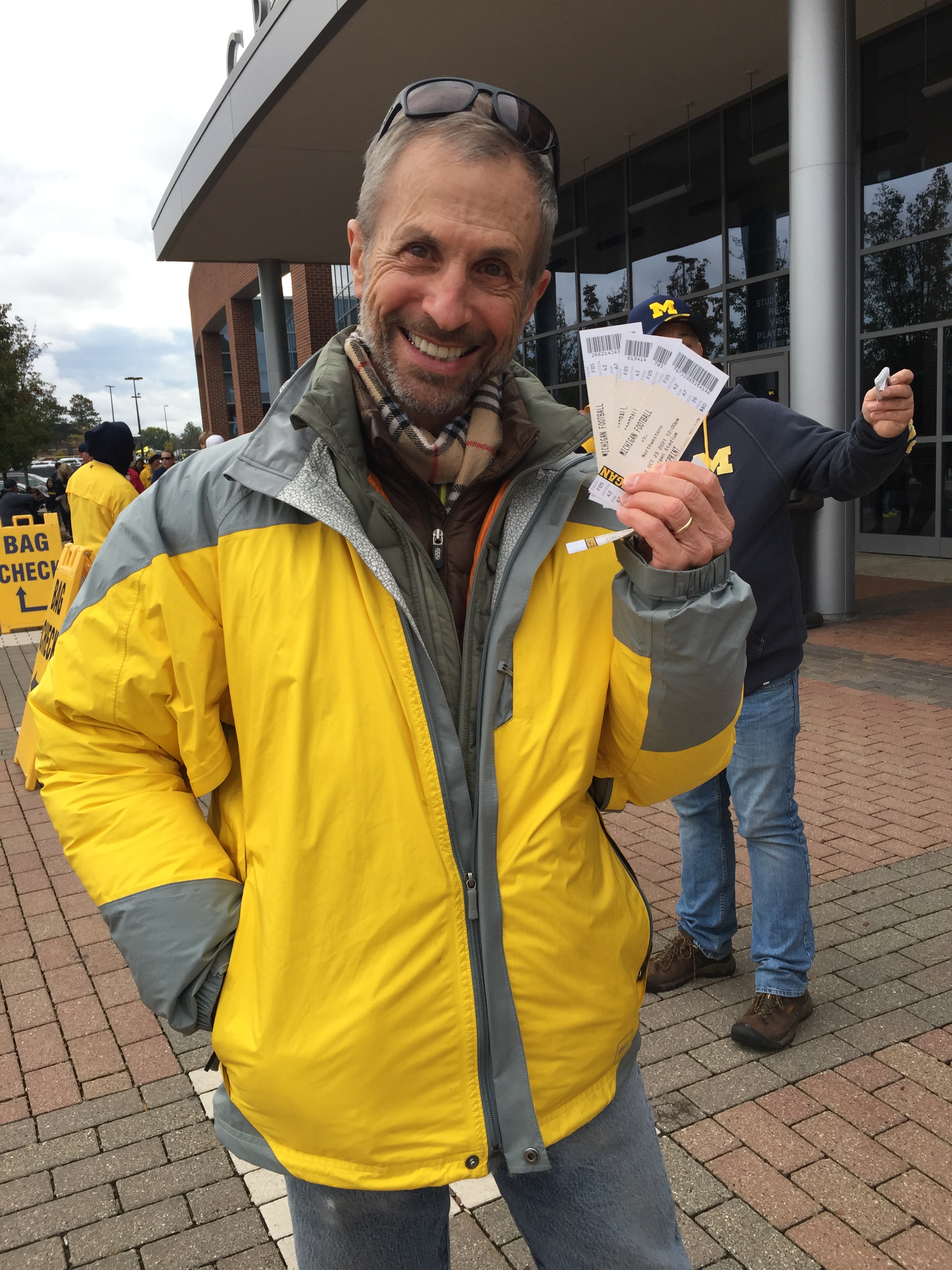 We were duly into all of it: cheering, singing, fist pumping on cue (MI fight song with choreographed crowd response), right down to Peter’s yellow and blue argyle socks: