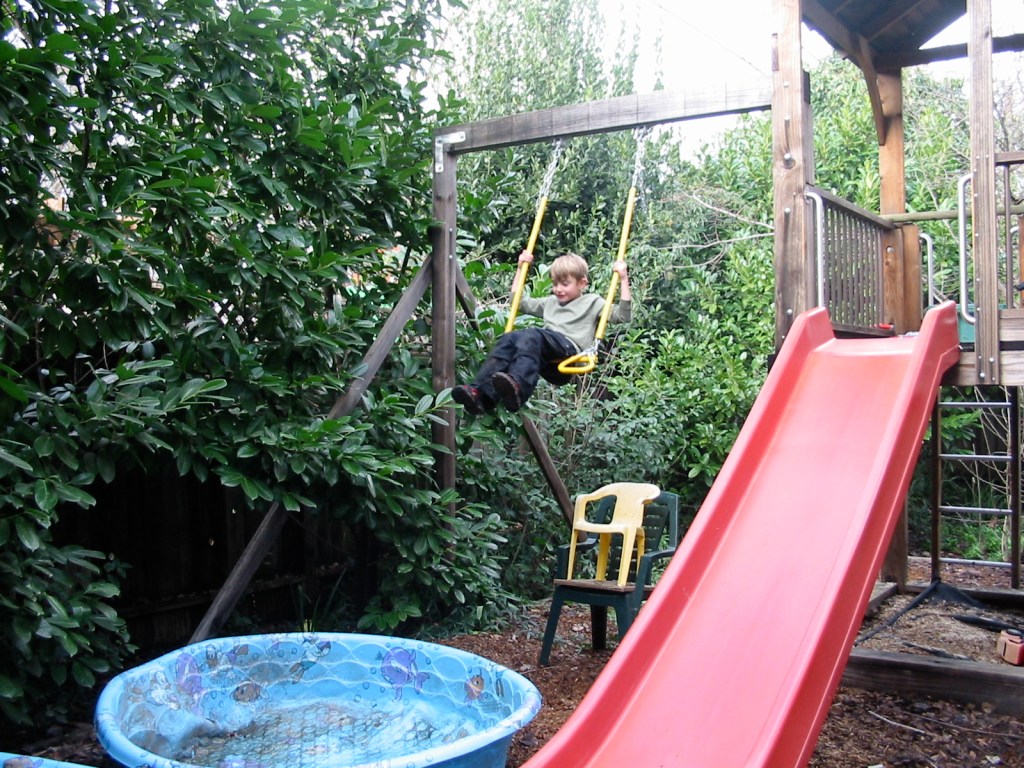 Note the very safe way (not) that Peter got up to that swing (which was actually not envisioned by the designer (Jim) as a sit-on-swing).