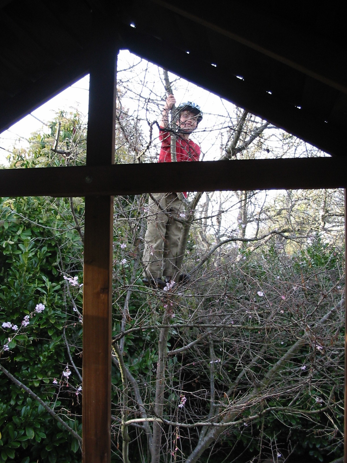 This is a view from the top floor of Peter climbing the adjacent cherry tree.. which he loved doing.. (I probably made him wear his bike helmet!) … until it had to be cut down due to disease…