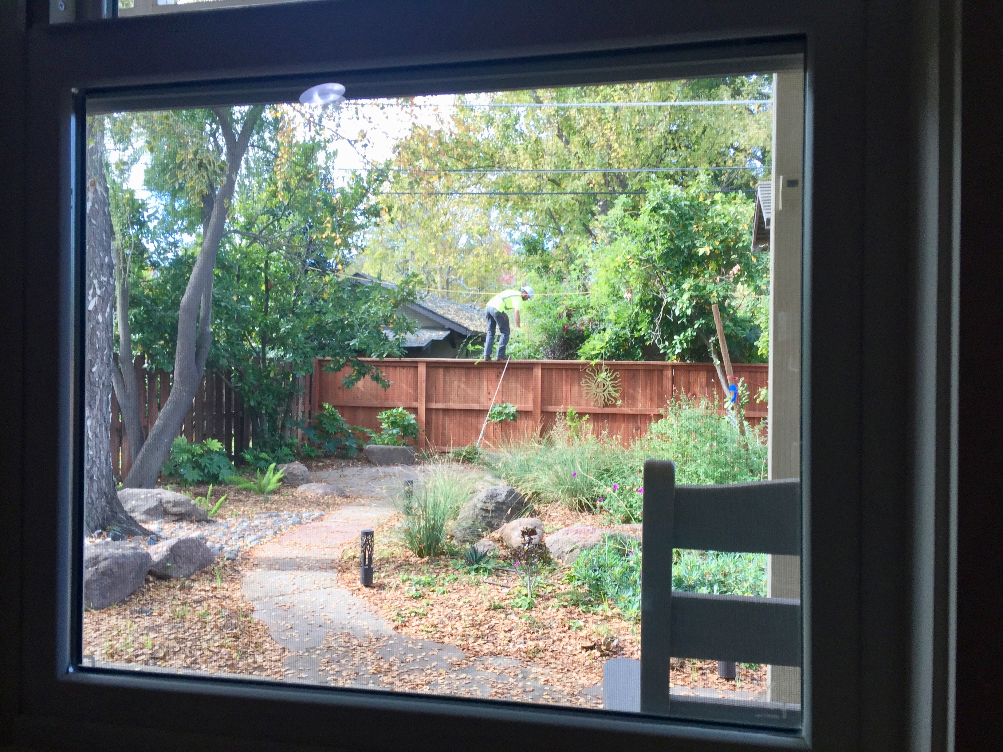 I looked out the window this afternoon to see a man on our fence…HE IS INSTALLING FIBER! At long last, we will have fancy pants high speed internet service to our home. Hallelujah!