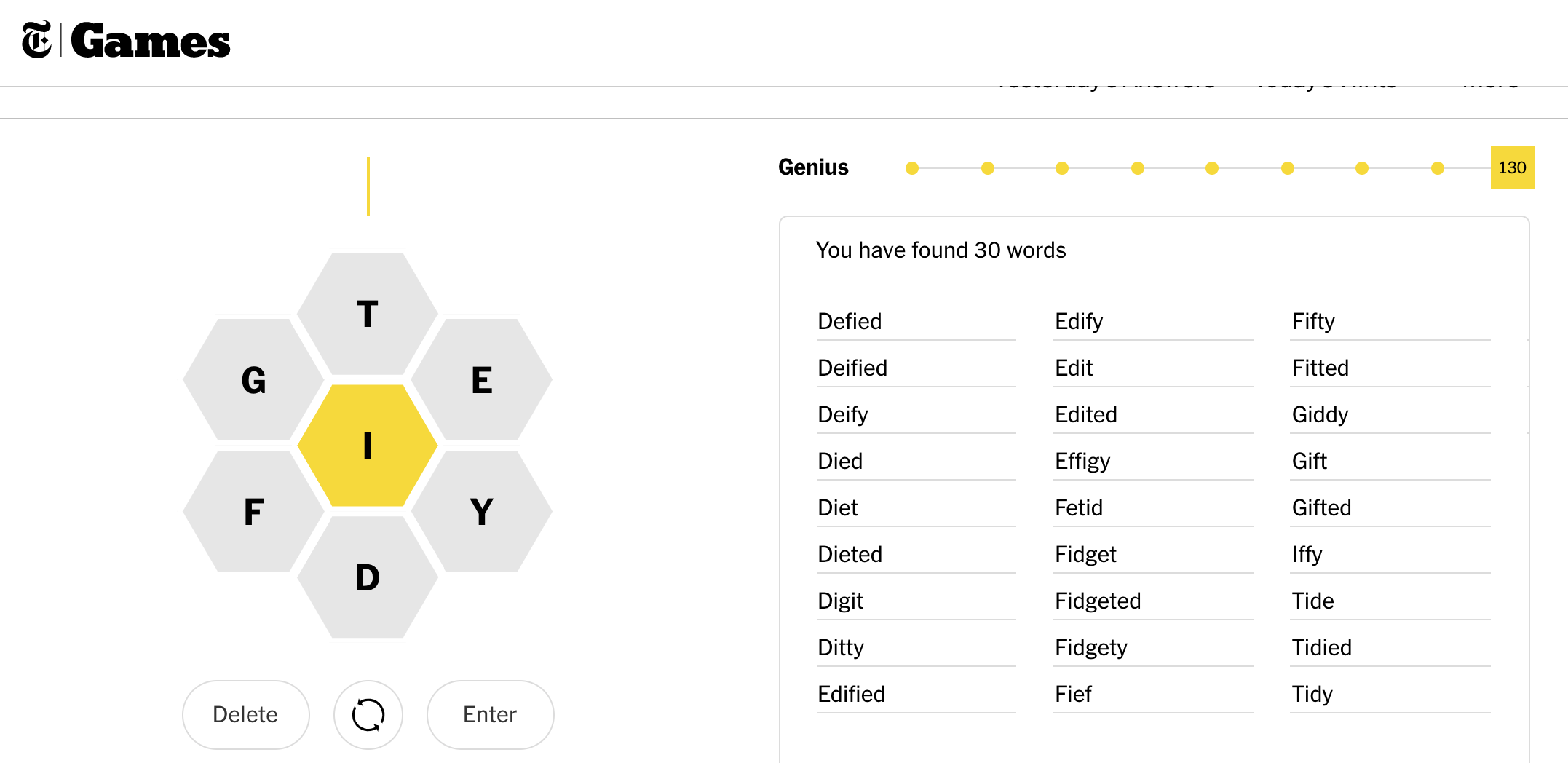 They said one could have found 39 words — so I missed a few — but 30 was considered genius. How ’bout that!
