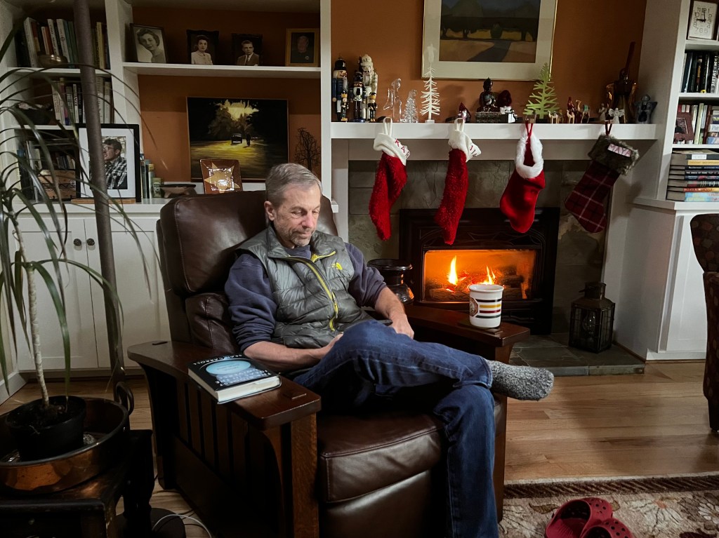 And finally, here’s what you do when 1) your desktop is un-powered and your wifi is out anyway; and 2) you’re battling a cold (not covid we learned following two days of testing):