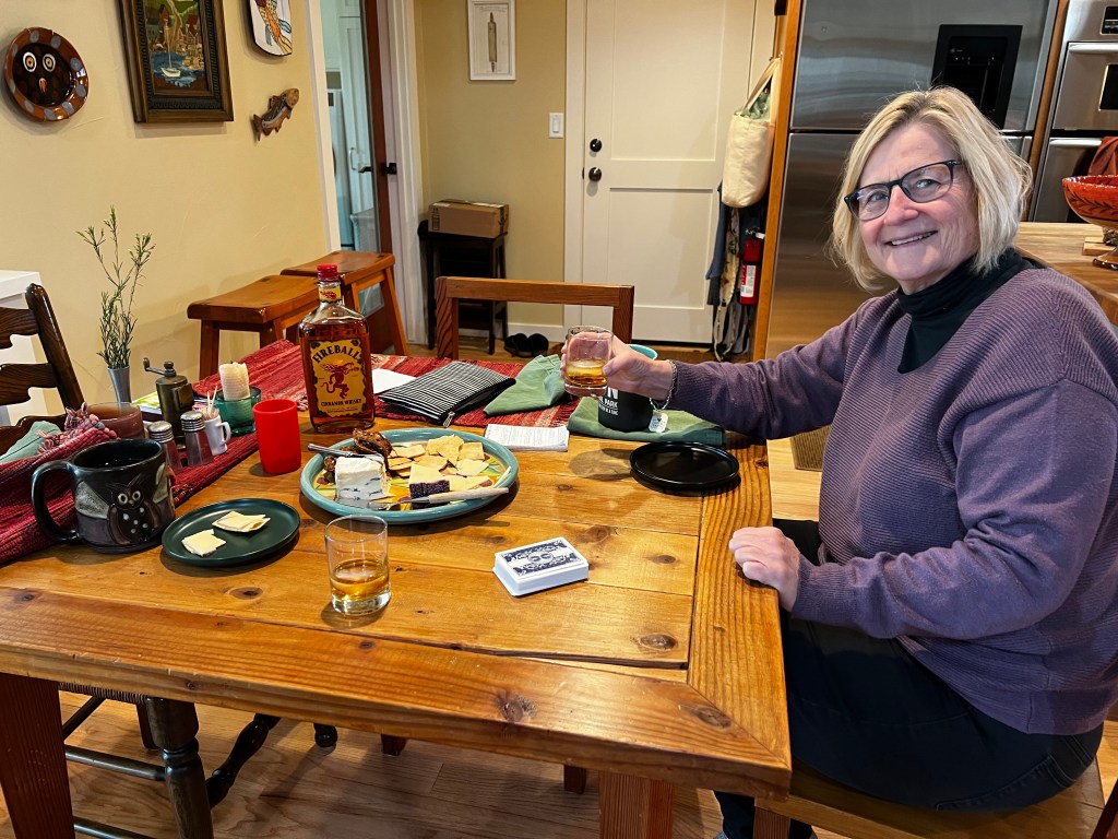 And yes ma’am, that is a bottle of Fireball whisky, on hand in honor of mom, who enjoyed drinking it (spiking her Ensure is the story Betsy tells). I will note we are also drinking hot tea, so, you know, not completely wild and crazy. I still think mom would approve.