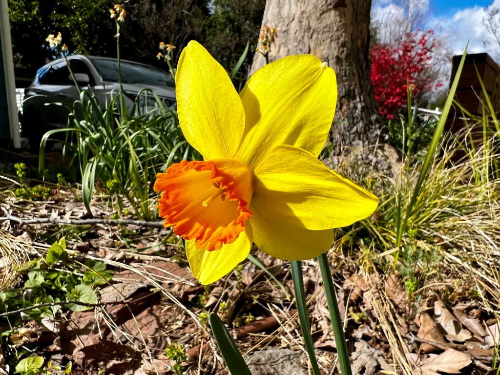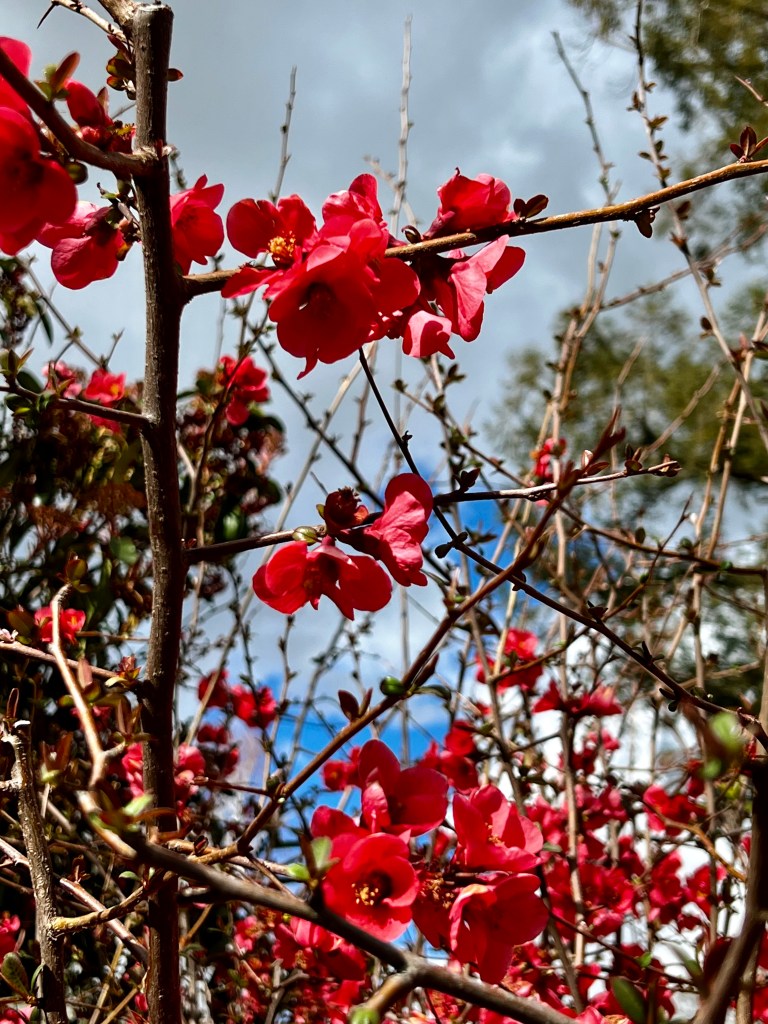 Here’s one more.. not a fantastic photo, but it was a dramatic walk home from lunch today: a grey, blue, white sky, deep purple blossoms on trees in the Central Park garden, white sycamore tree trunks… mmm, mmmm.