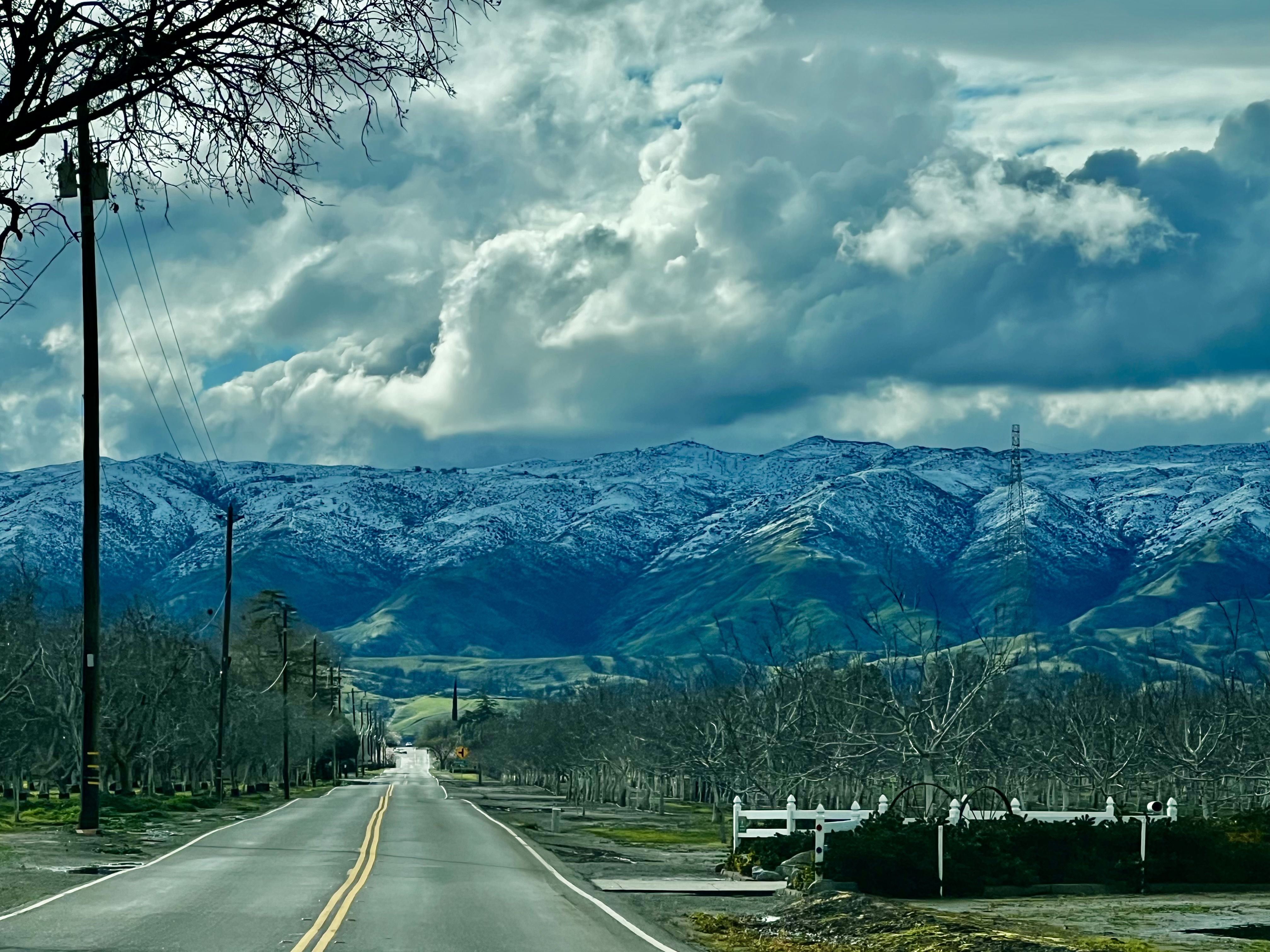 This afternoon, heading back from Vacaville, I decided to veer north along 505, then cut back west along Putah Creek Road to get a closer-up view of the SNOW in the Berryessa Hills. A super fun event for us valley folk.