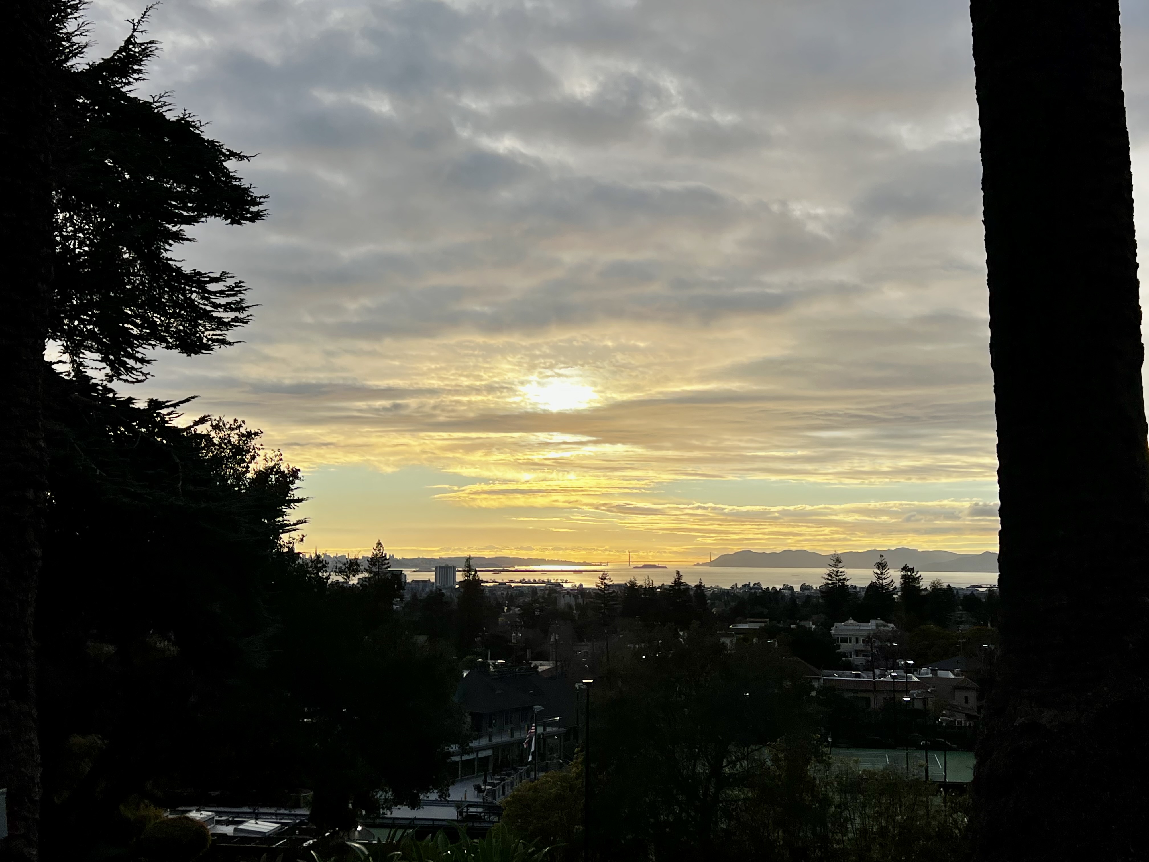 After the day’s presentations, Chris and I went to the Claremont Hotel for a drink… (see Golden Gate, Alcatraz in front of the setting sun)…