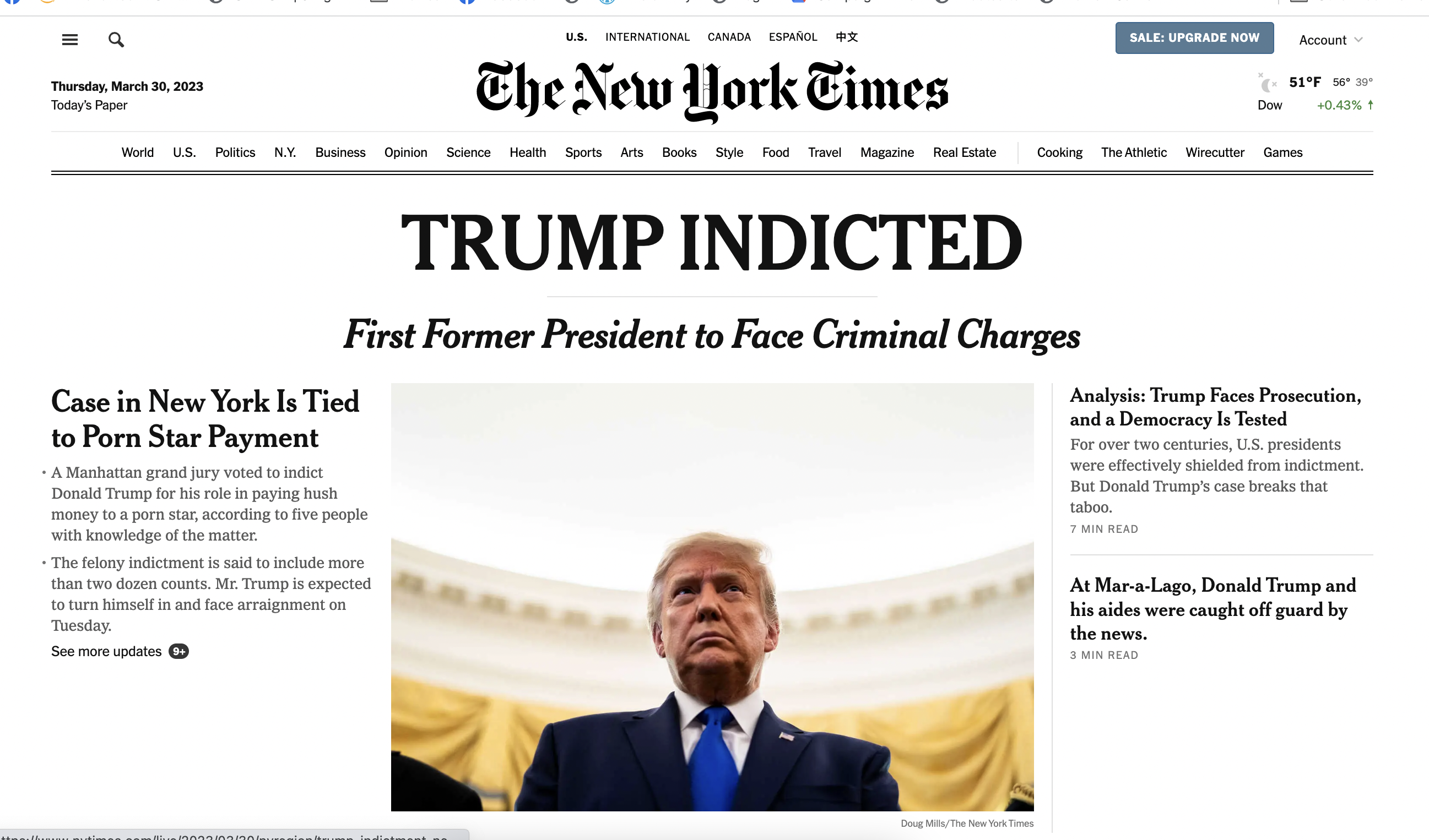 First, there was the ever-so-satisfying, thought-it-would-never-happen indictment of the creepiest, most corrupt country-wrecker in our nation’s history. That was major cause for celebration, even as this hush money fraud case is the least of the violations he’ll be indicted for before all is said and done. He’s dodged accountability for way too long and this just feels great. It made for a super fun night of late night comedy, too. Couldn’t live without late night.
