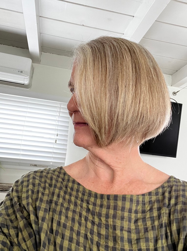 The immediately after version of my haircut, every hair in place, as perfected by Claes (we went for short, interesting, allow bangs to grow out, warm color):