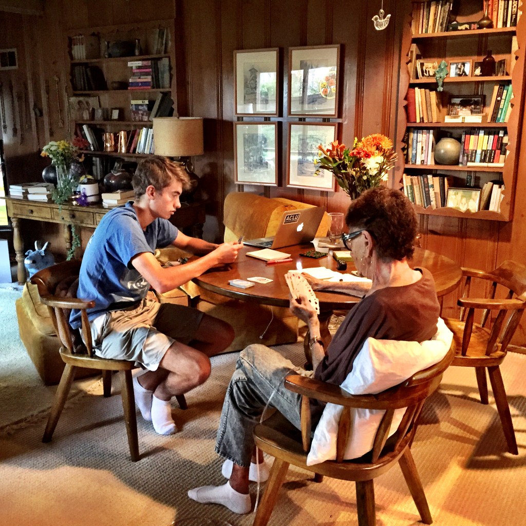 How about some shots around the family room table? This is two months before mom died. She made dinner, “mom’s chicken.” We all do a version of it, none as good as hers.