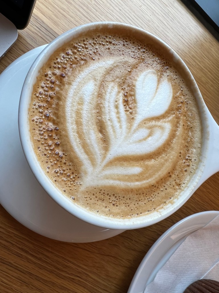 And just because.. here’s a close up of that latte. I love Cloud Forest and Mishka’s and will continue to patronize them, but will look forward to Mondays–when CF (current regular coffee spot) is closed–to go to Temple. Mishka’s has dropped down a couple pegs b/c it’s so crowded and the wifi is so terrible… but I’ll still go because, well, I love Mishka’s!