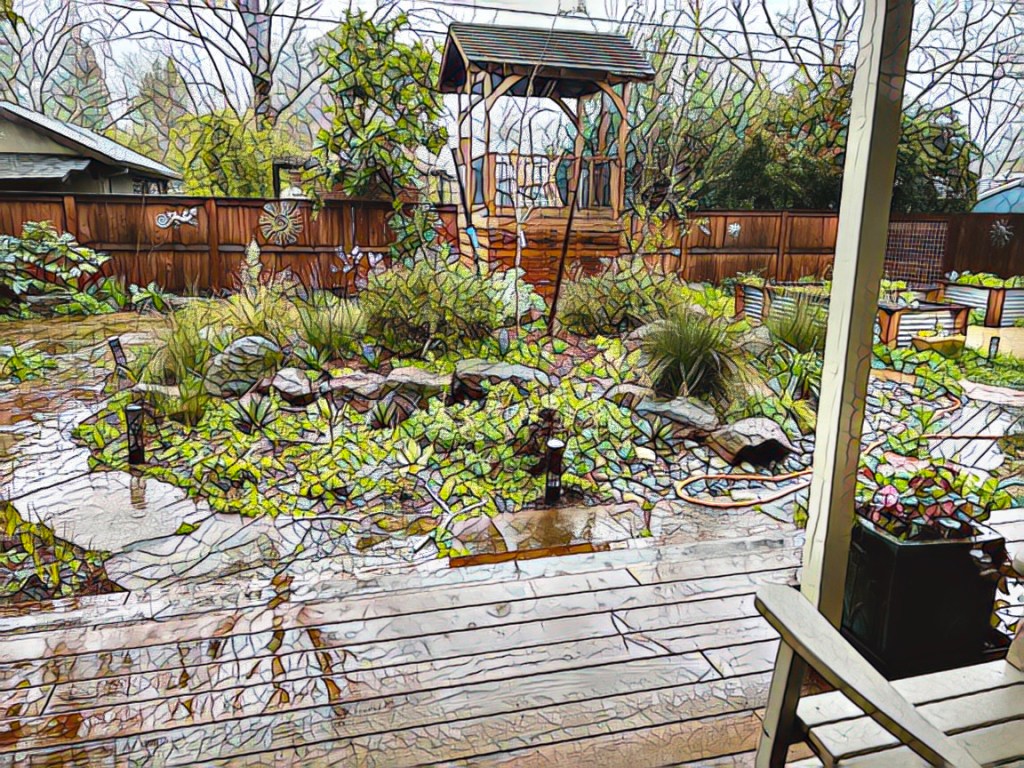 So… I’m looking out the back window.. and decided to turn our dreary backyard into something a little more bright and cheerful.. or at least interesting.